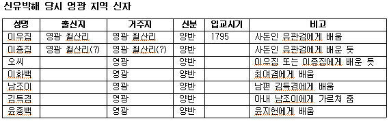 강진의 윤제현(尹濟賢) 등과 더불어 영광의 윤종백(尹宗白)이 포함되어 있었다.