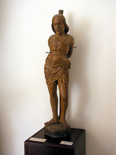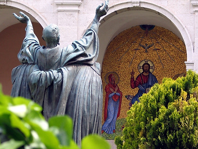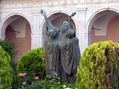 수도원 입구회랑 가운데 있는 베네딕토 성인상 (출처- http://info.catholic.or.kr/)