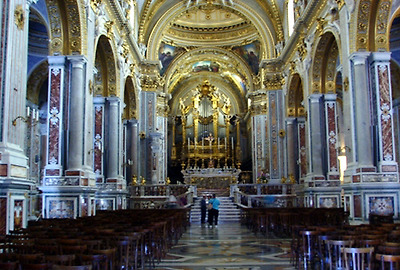 성당 내부의 제단과 천정은 금으로 화려하게 치장돼 있고, 벽과 바닥은 색색의 천연 대리석으로 장식돼 있다. 중앙 제대 밑에는 성 베네딕토와 성녀 스콜라스티카의 무덤이 있다.