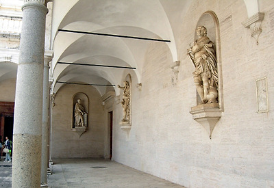 파라다이스 로지아(Paradise Loggia)로도 불리는 중앙회랑 오른쪽 계단 아래 있다