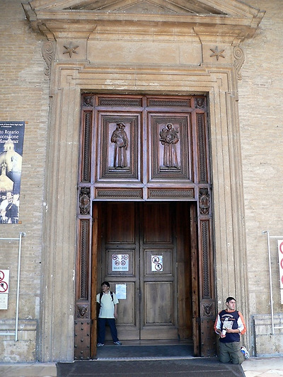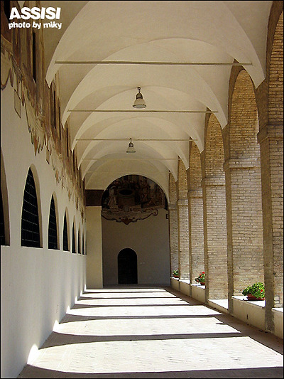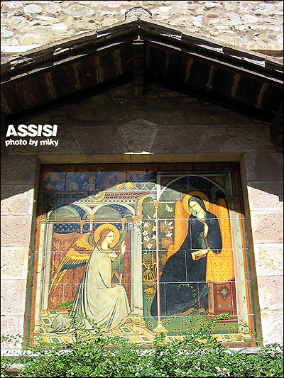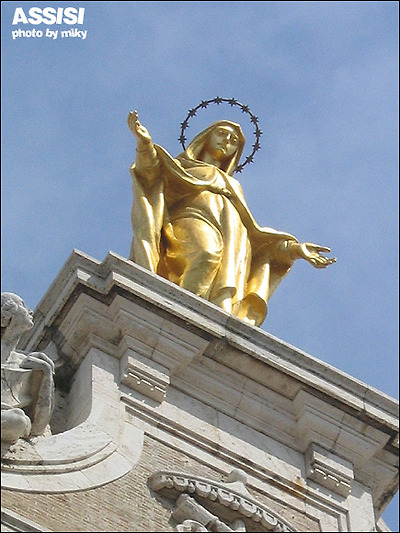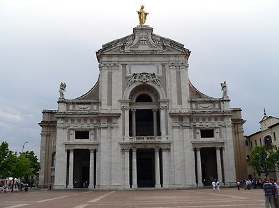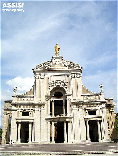 Santa Maria degli Angeli 성당은 원래 성프란체스코와 그 제자들이 오두막을 지었던 곳이다. 부유한 아들로 태어나 방탕하게 살다가 전쟁을 계기로 모든것을 버리고 청빈하게 나환자를 돌보며 살아간 프란체스코가 이곳에 오두막을 지어 그 제자들과 공동체 생활을 한곳이다. 현재의 성당은 16세기 갈레아쪼 알레씨 (Galeazzo Alessi)에 의해 건축되어 지는데 늘씬한 지붕과 함께 당당한 위엄을 갖추고 있다. 성당에 들어서면 포르쥰콜라 (Porziuncola-조그마한 예배당-프란체스코회의 창설지), 가시 없는 장미, 성 프란체스코(San Francesco)가 죽은 곳, 상 위의 비둘기등을 볼 수 있다.