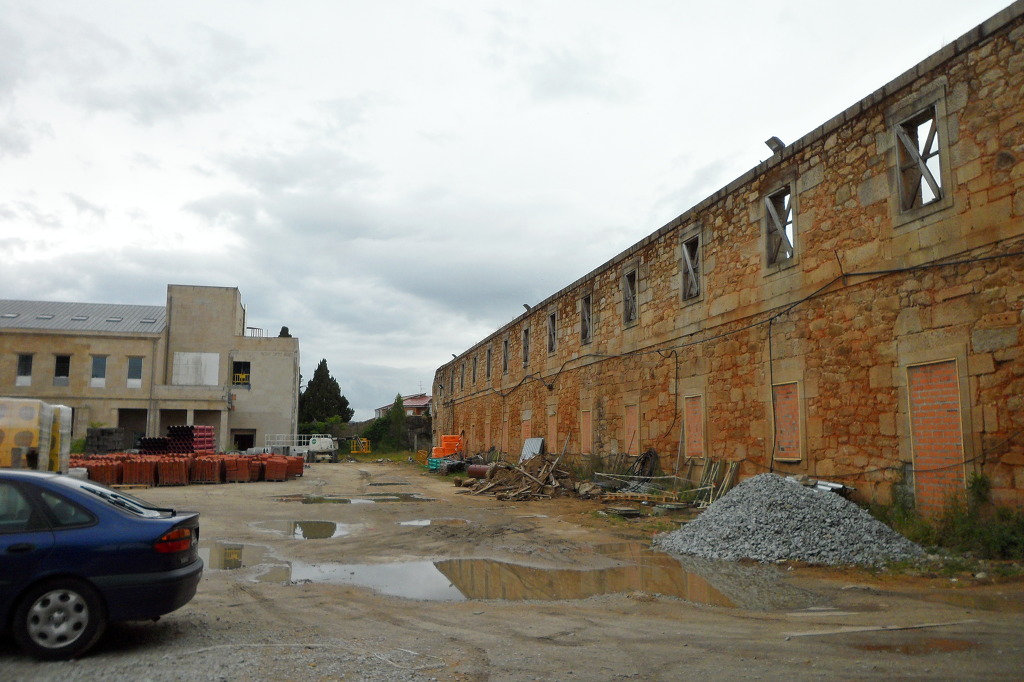 옆에는 건물 외벽만 남은 고 건물이 있다.