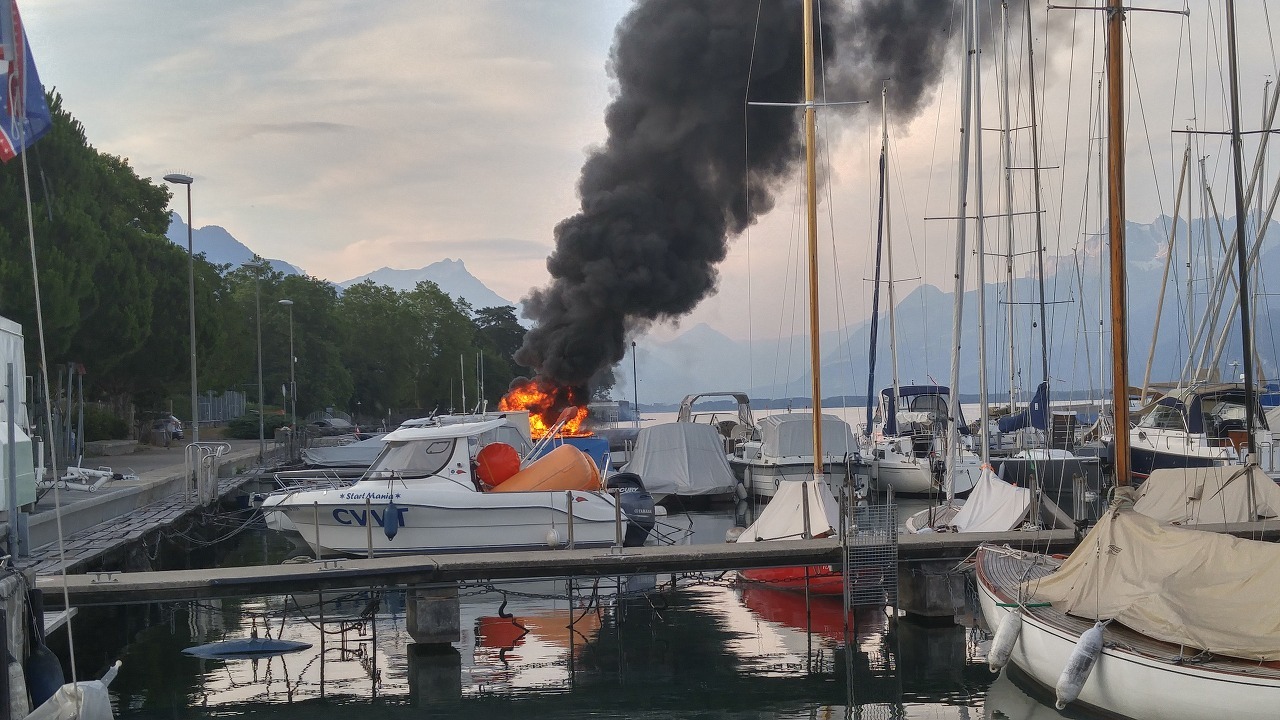 히바쥐(Rivage) 마을 선착장에서 호수를 다시 만났습니다. 요트 계류장 안에 있는 작은 보트에서 불길이 치솟았습니다. 검은 연기가 피어오르고 얼마 안 있어 소방차가 도착했습니다. 이른 아침 화재로 배 안에서 자고 있던 사람들이 몰려 나와 불 구경했습니다. 순식간에 보트는 전소되었습니다. 다친 사람이 없어야 할텐데하며 계속 걸었습니다. 플라타나스가 우거진 직선 호반 길에 산책나온 사람들이 오고 갔습니다. 호수는 잠잠했습니다.