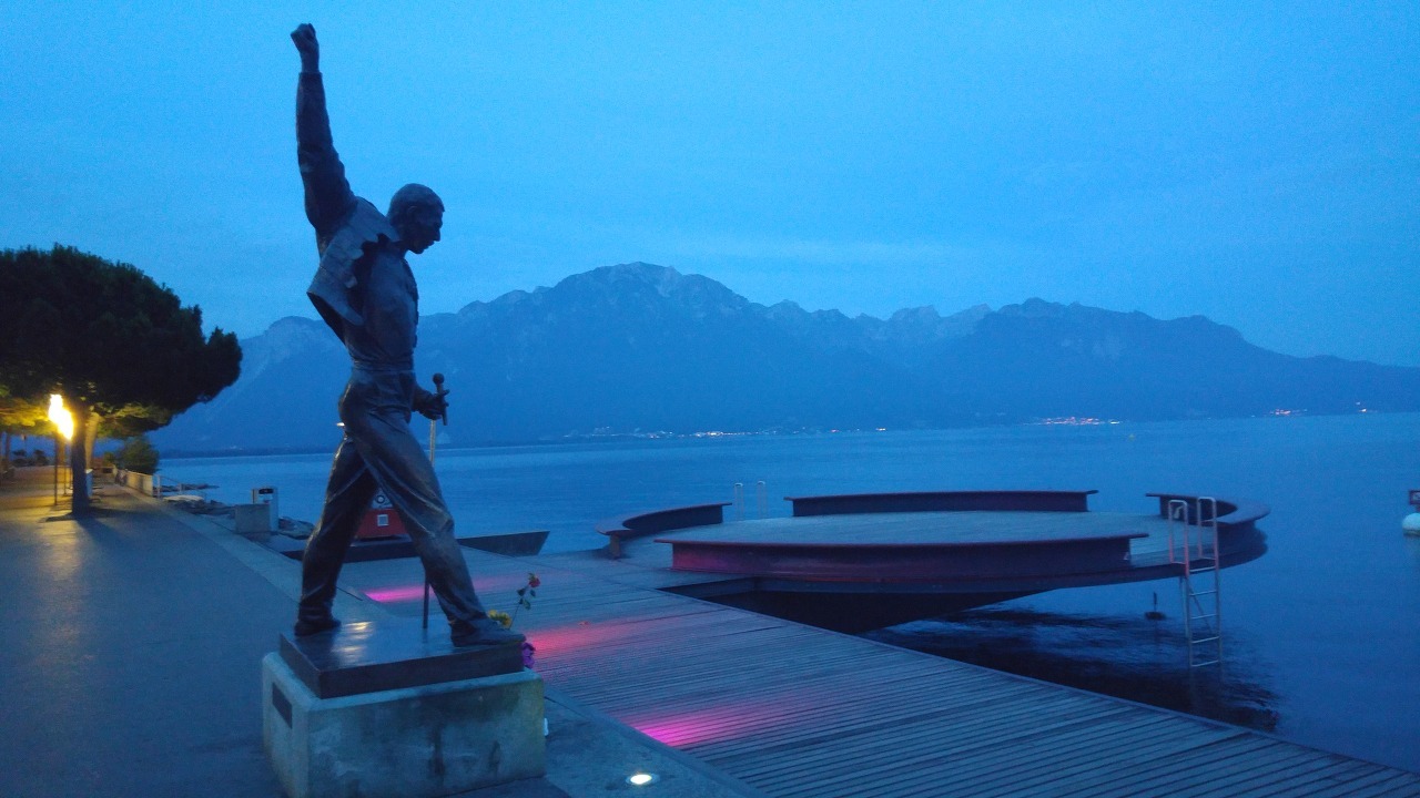 아직 어둠이 가시지 않았습니다. 불쑥 튀어나오는 동상. 호수 가에 서 있는 프레디 머큐리의 동상은 살아 있을 때 공연 모습이었습니다. 이곳은 프레디 머큐리가 과일이나 채소가게에 장을 보러 오던 곳이라고 합니다. 1995년 발매된 그의 앨범 “Made in Heaven” 재켓에 사용된 사진이 이곳입니다. 그는 1960년대부터 작곡 등 음악 활동을 했고 70년대에 그룹 퀸을 결성했습니다. 80년대 중반부터 폭발적인 무대 공연으로 전세계를 열광시켰다가 1991년 죽었습니다. 그의 나이 45세 때였습니다. 락 발라드는 고전음악 분위기를 풍겼습니다. 퀸의 “Love of My Life”는 신세한탄이었습니다. [Queen, Love of My Life, in A Night at the Opera, 1975]