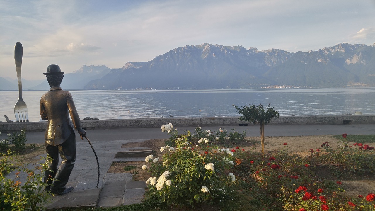 희극배우 찰리 채플린이 미국에서 공산주의자로 몰려 배척을 받아서 이곳을 찾아와 살다가 생을 마감했습니다. 1950년대 미국을 휩쓸었던 매카시즘 광기의 피해자였습니다. 아무나 공산주의자로 몰아서 매장시켰던 상원의원 조셉 매카시. 채플린이 배우 생활에 종지부를 찍어서 아쉽다고도 했지만 이런 아름다운 곳에서 번잡한 일상을 내려놓고 살았다니 그것도 복일 것입니다. 제2차 세계대전을 겪었을 또래들의 기억 속에 영원한 광대로 남았습니다. 그의 동상이 우스꽝스러운 광대의 모습으로 호수가 공원에 서 있었습니다.