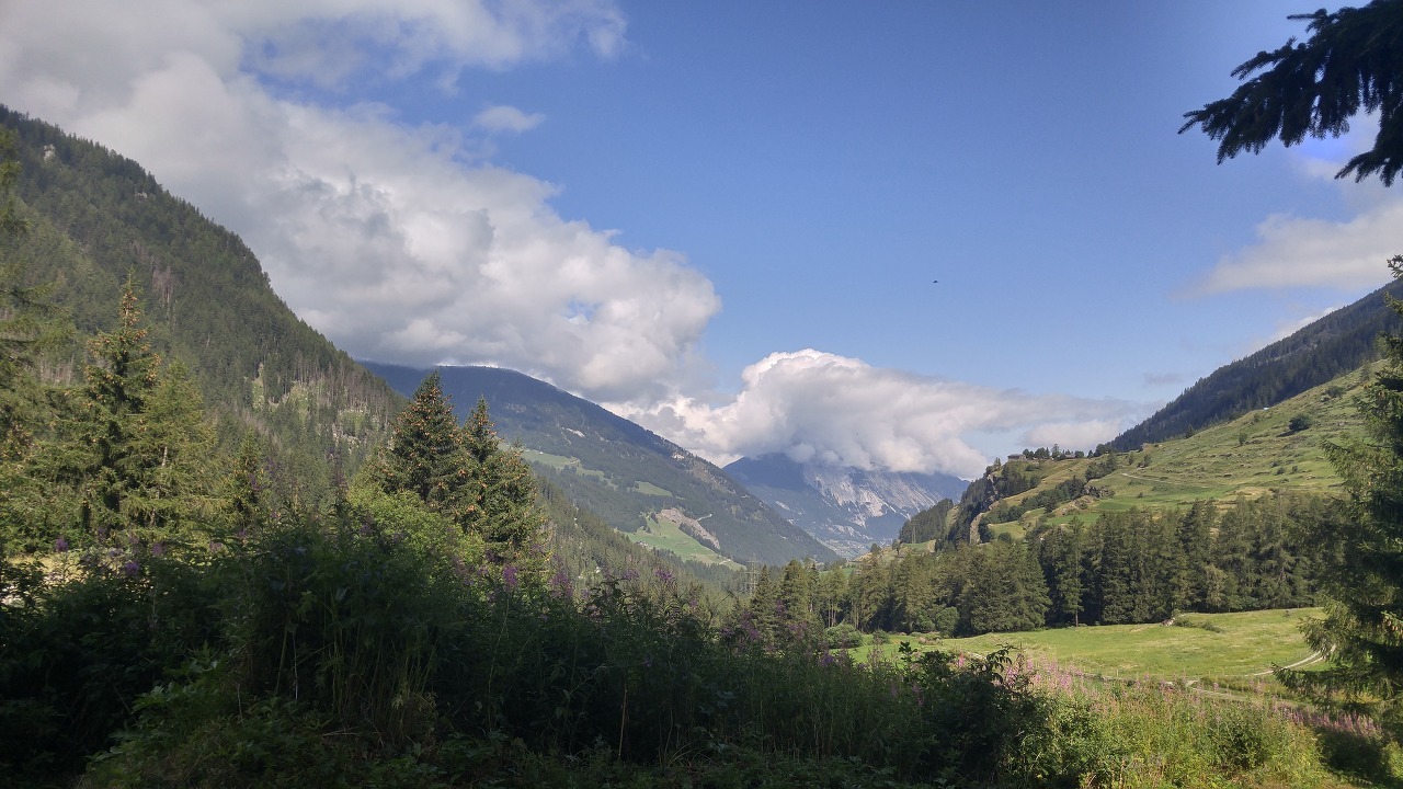 시원한 골짜기 초원을 걸었습니다. 오른 쪽으로 작은 강 드헝스 동트헤몽(Dranse d'Entremont)이 흐르는 계곡은 100m 쯤 낮은 깊은 곳이었습니다. 양 옆에 3000m 가 넘는 준령이 까마득하게 높은 지형이었습니다. 그헝 꽁방 (Grand Combin) 산자락을 따라가는 길이었습니다. 한발 한발 모두 의미 있는 오르막이었습니다. 우거진 나무들은 모두 추위에 강한 침엽수들이었습니다. 주로 가문비나무들로 보였습니다. 긴 겨울을 이겨내는 나무들만 자라는 곳이었습니다.