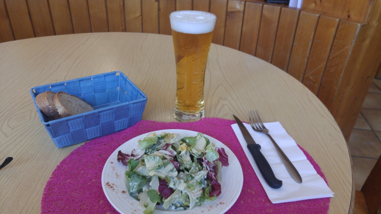 빨래를 널었는데 잘 마르지 않았습니다. 오후에 호스텔 침실에 벨기에 사람들 8명이 몰려와 붐볐습니다. 보름째 산악 트래킹하는 혼성 그룹으로 질서 정연했습니다. 이들은 수백 km 산길을 걸어도 화기애애한 모습이었습니다. 한국인은 세 사람만 모여 며칠 걸으면 잡음이 나던데. 차이는 뭘까 궁급했습니다. 여행 경비관리를 철처하게 개인별로 하고 나눔 또한 분명한 관습이 바닥에 깔려 있었습니다. 어설픈 체면 문화, 의미 없는 호의에 얽매이지 않는 사람들. 저녁 식사는 피자와 포도주였습니다. 동네 사람들, 벨기에 사람들도 같은 메뉴. 내일이 스위스 국경일이어서 마을에서 폭죽을 터트렸습니다. 점심 + 저녁 + 숙박 + 아침식사 = 72 프랑.