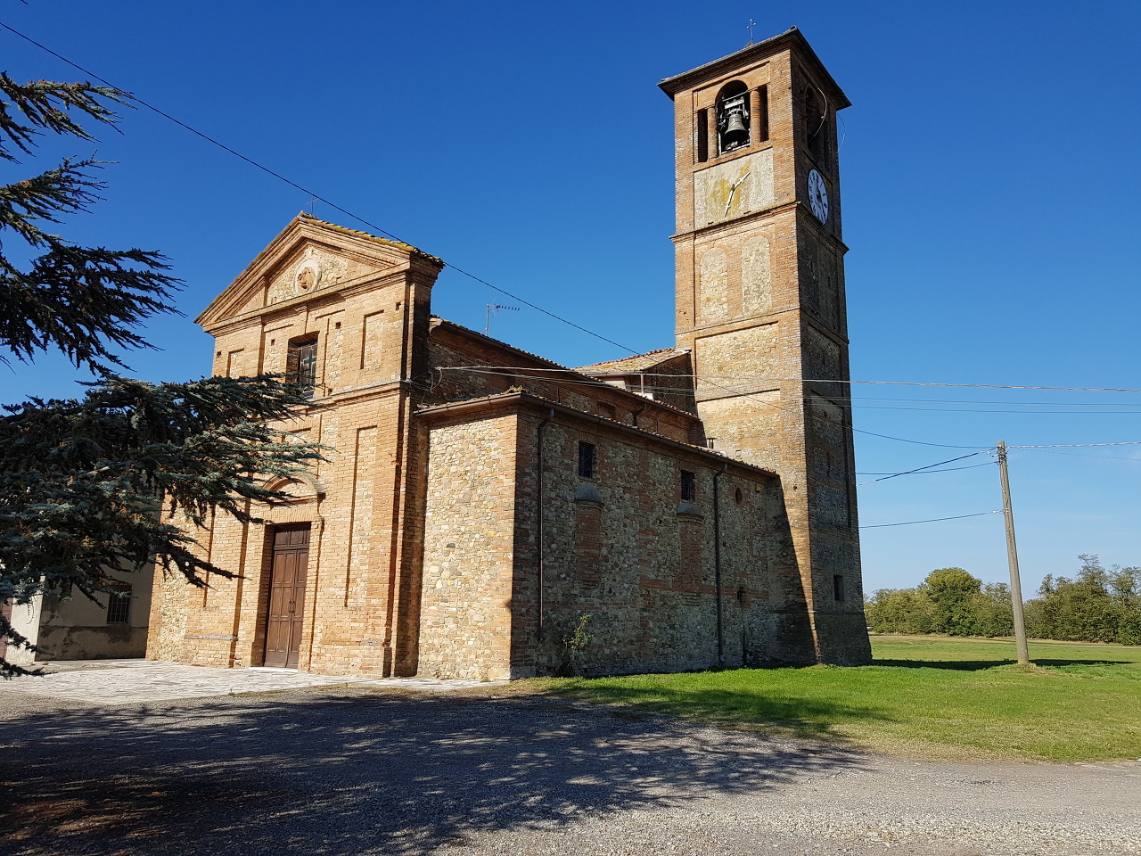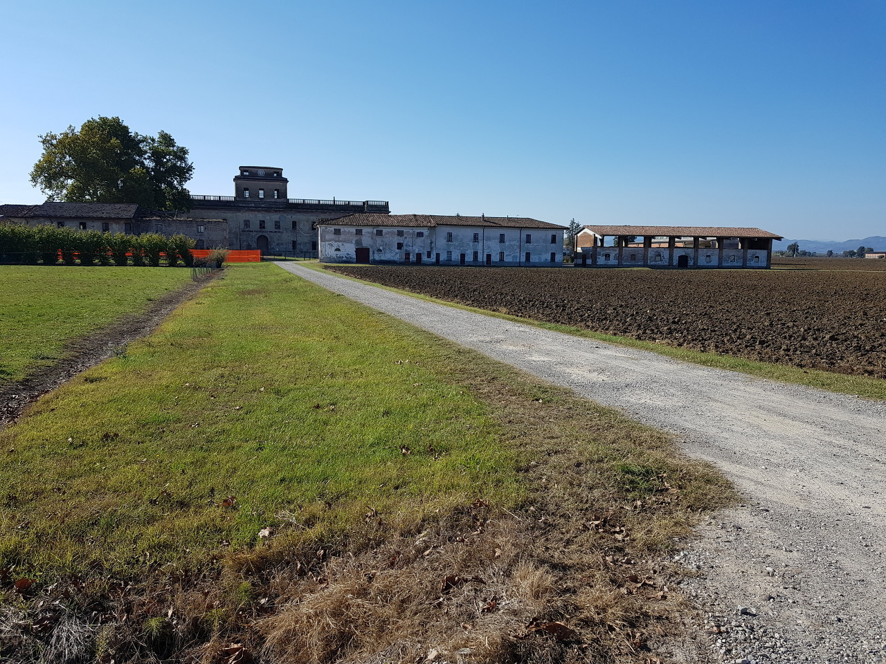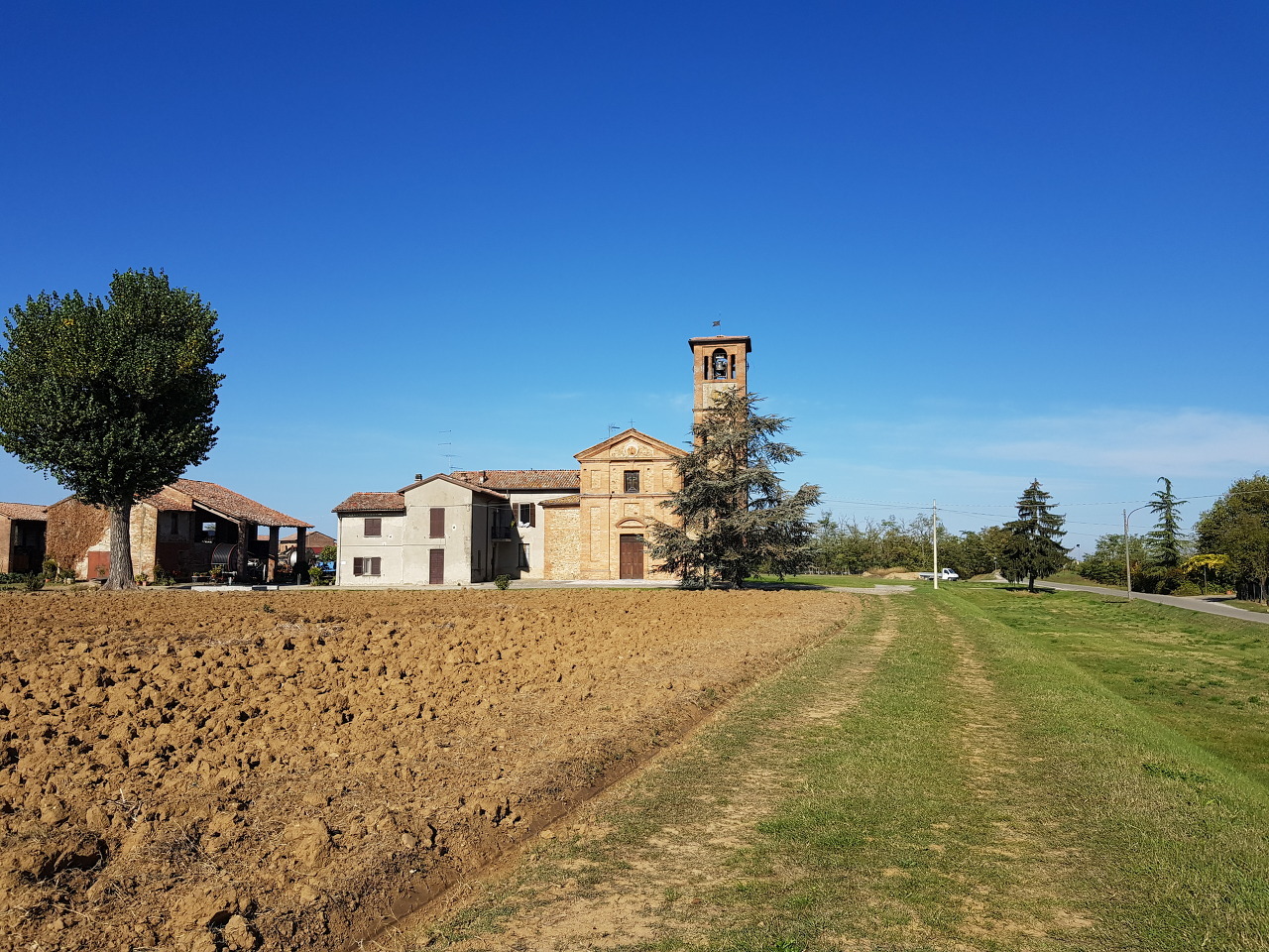 남쪽으로 몇 km 더 걸어서 파데르나 성(Castello di Paderna) 앞을 지나갔습니다. 숲과 성벽 안에 농가 형 정원과 부속 성당을 가진 곳입니다. 천년 넘는 역사를 가진 성이면서 옛 성주의 후손들이 예식장 영업을 하는 곳입니다. 입장료를 받는 곳입니다. 길가의 사도 성 바오로 성당(Cattedra S. Pietro Apostolo) 건물은 가림막을 치고 보수중이었습니다. 들판을 더 걸으면 커다란 카시나 건물을 지납니다.