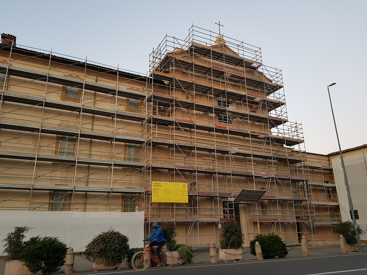 몬탈레 산 피에트로 성당에 딸린 순례자 숙소가 있었습니다. 침대 7개, 부엌이 있는 곳입니다. 10유로. 근처에 식당과 바가 있었습니다. 피아첸자에서 머물지 않고 이곳까지 오는 순례자들이 묵어 가는 곳입니다. 이곳에서 피오렌주올라까지 26km여서 칠십대 순례자에게 하루 걷는 거리로 적절할 것입니다. 코로나 환난으로 폐쇄된 상태였습니다. 환난이 끝난 훗날 이곳을 지날 때 머물려면 미리 연락해봐야 하겠습니다. 산 피에트로 성당은 대대적인 보수공사를 하고 있었습니다.