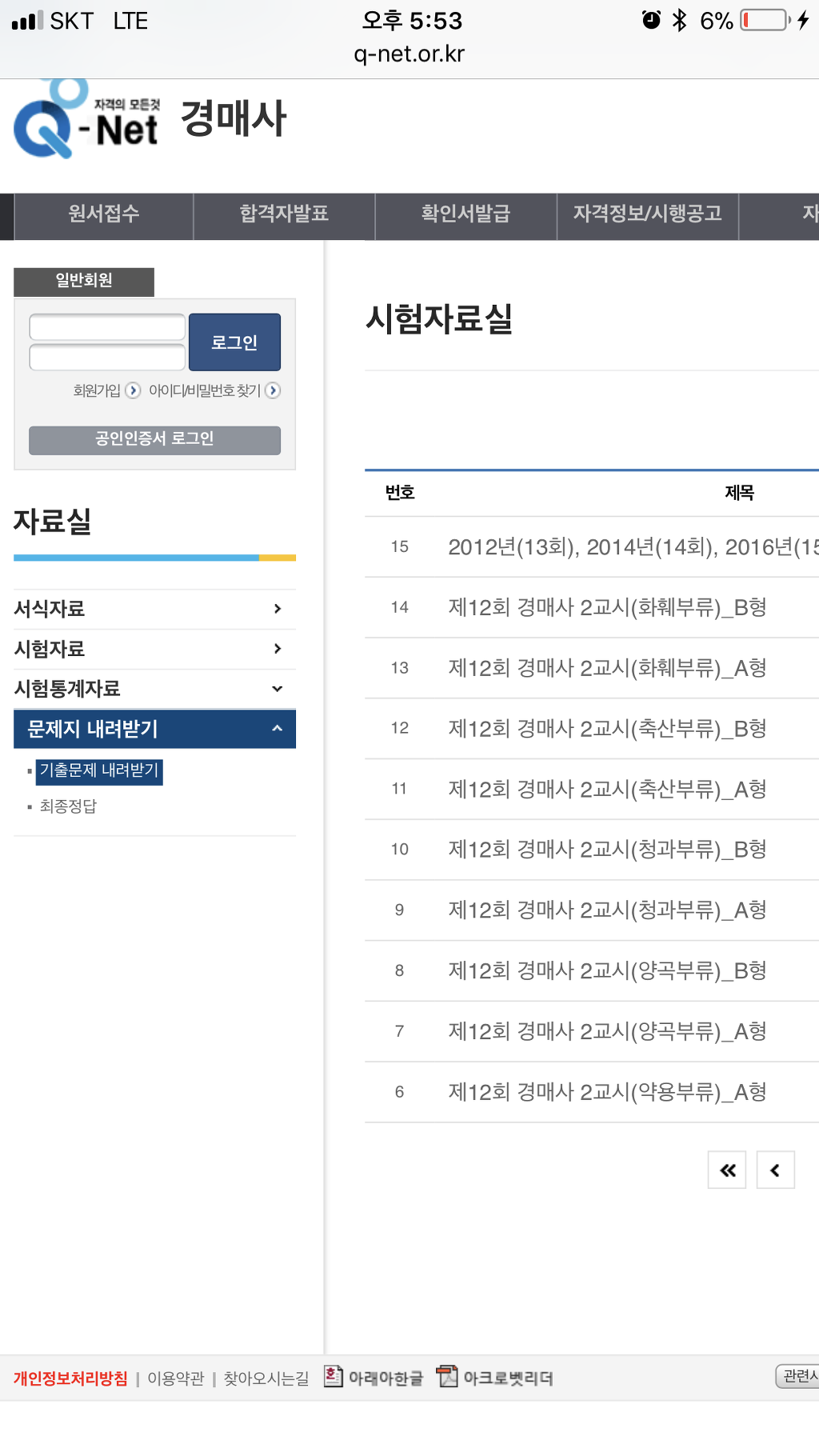 Re:문의 드립니다. 작성자옥셔너|작성시간18.02.01|조회수139 목록 댓글 0 글자크기 작게가 글자크기 크게가 경매사자격증 홈페이지 ▶ 자료실 ▶ 시험문제 내려받기에 있습니다. 클릭http://www.q-net.or.kr/man001.do?id=&gSite=L&gId=46 다음검색 현재 게시글 추가 기능 열기 북마크 공유하기 신고 센터로 신고 댓글 댓글 0 댓글쓰기 답글쓰기 댓글 리스트