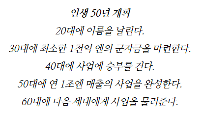 - 손정의의 인생 50년 계획이 유명함.