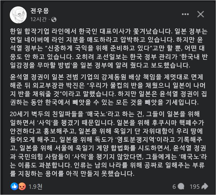 '외국인'이라는 이유만으로 이사진까지 경질되고 일본인으로 교체되는 초유의 상황일본 라인 강탈 시도가 심각한 상황인 이유
