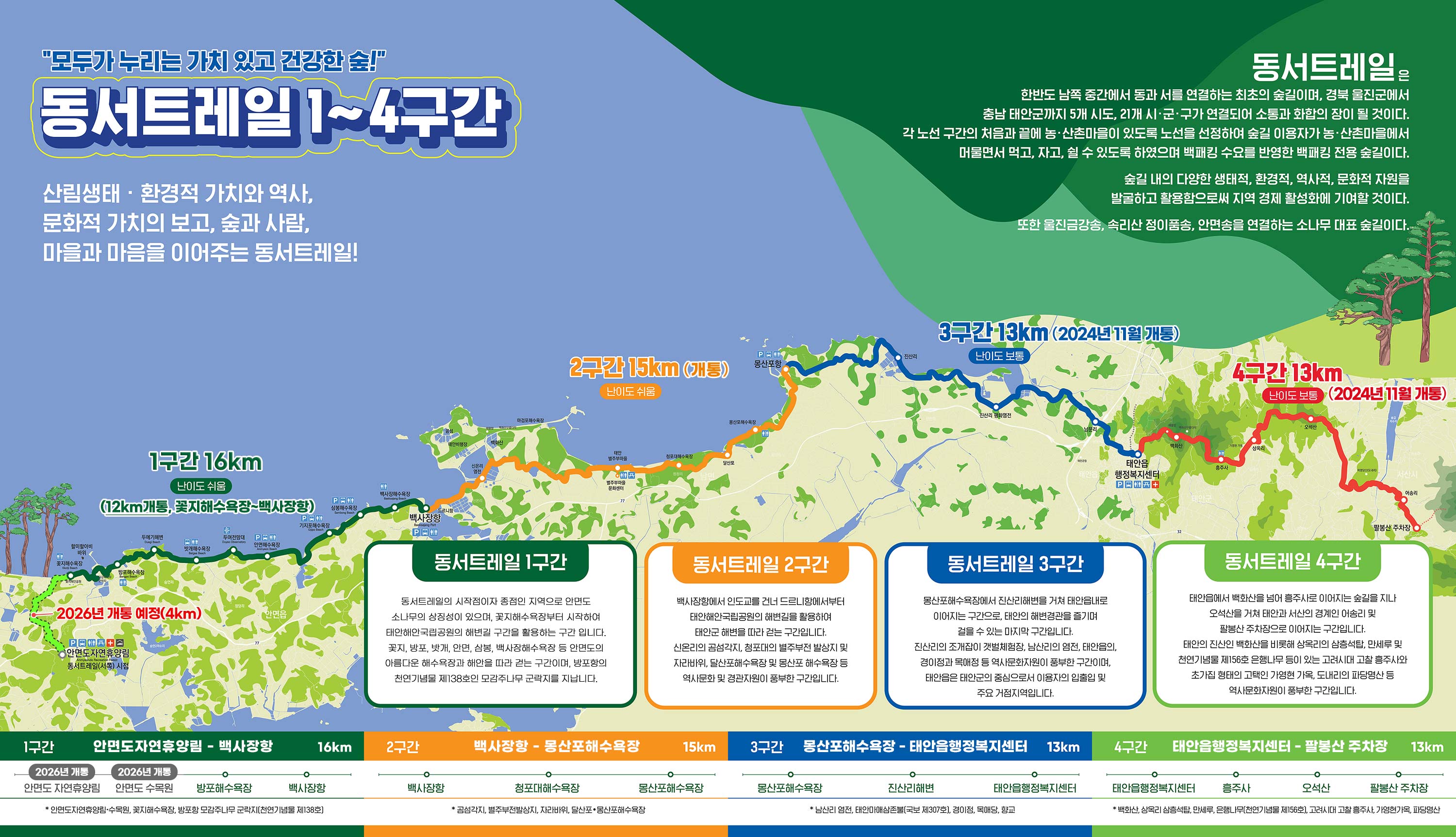 산림청에서 주관하는 충청남도 태안군에서 경상북도 울진군까지 이어지는 숲길(둘레길)이다.