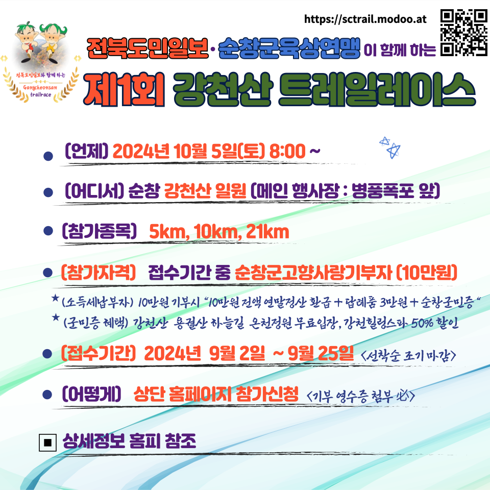 오는 10월 5일(토) 순창 강천산 일원에서 순창군 최초의 트레일레이스가 열립니다!