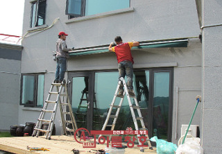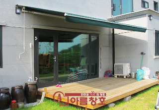 양평 옥천면 전원주택 테라스에 어닝(차양막)을 설치하였습니다. 어닝은 고정형의 차양과 달리 언제든 접었다 폈다 할 수 있어 직접들어오는 자외선을 차단시켜주며 빗물의 유입을 막아주어 비나 눈이 올 경우 빗물이 들이치는 것을 막아주며 미끄럼사고등을 방지할 수 있어 비나 눈이 올 경우 활용하지 못하는 외부공간의 활용도를 높여줍니다. 어닝은 다양한 색상과 디자인이 가능하여 설치장소의 인테리어를 고려하여 선택할 수 있습니다.