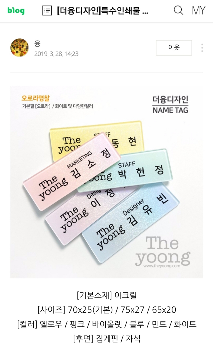 착용감좋은 명찰,더융디자인
