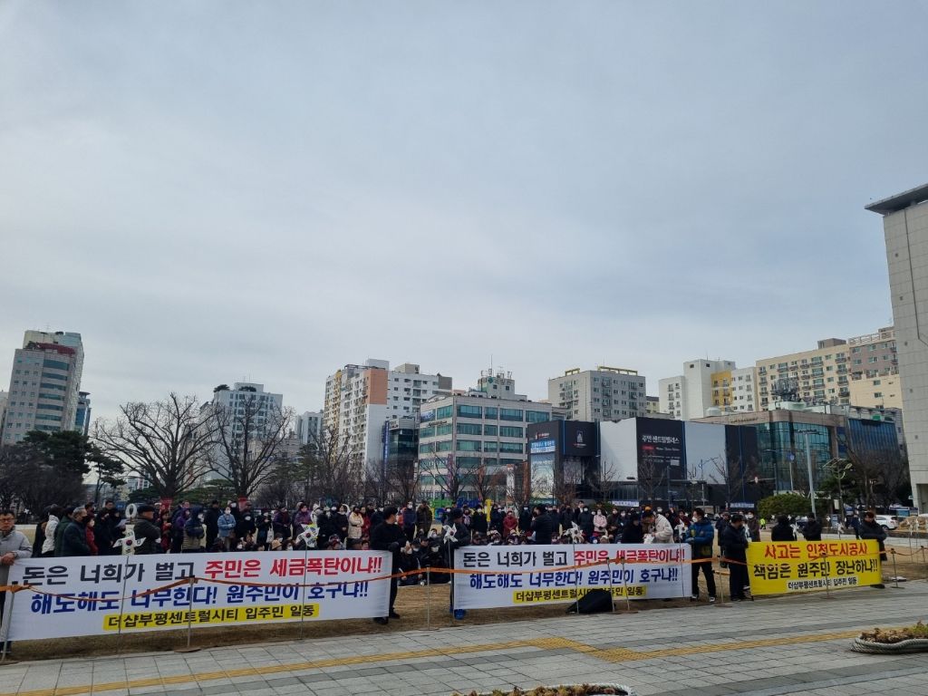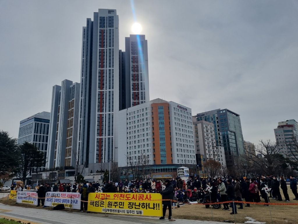 날씨도 쌀쌀한데 많은 피해주민들께서 참여하여주시어 인천도시공사의 불합리한 판단으로 세금과 건강보험폭탄부과로 원주민들의 고통을 항의시위 하였습니다