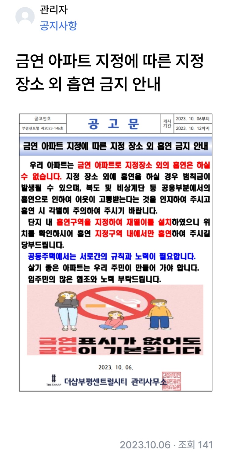 금연구역 지정 및 흡연금지안내 작성자walk1004|작성시간24.03.30|조회수42 목록 댓글 0 글자크기 작게가 글자크기 크게가 다음검색 현재 게시글 추가 기능 열기 북마크 공유하기 신고 센터로 신고 댓글 댓글 0 댓글쓰기 답글쓰기 댓글 리스트