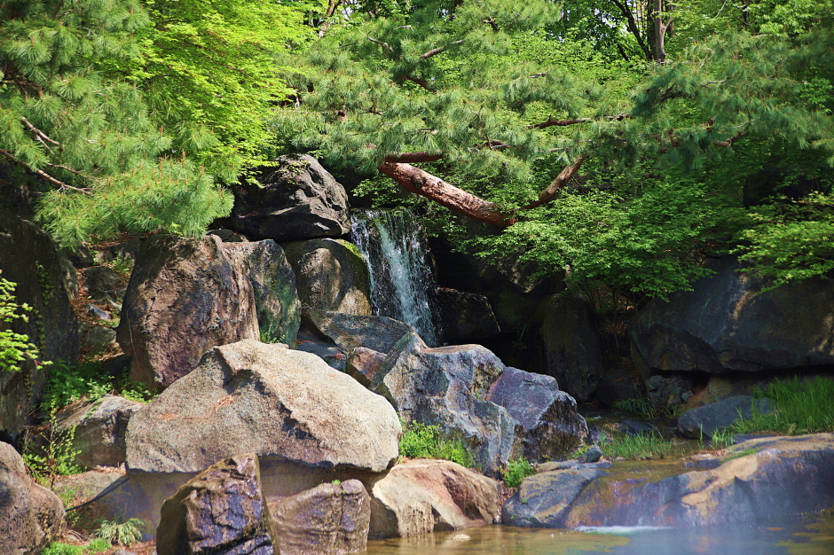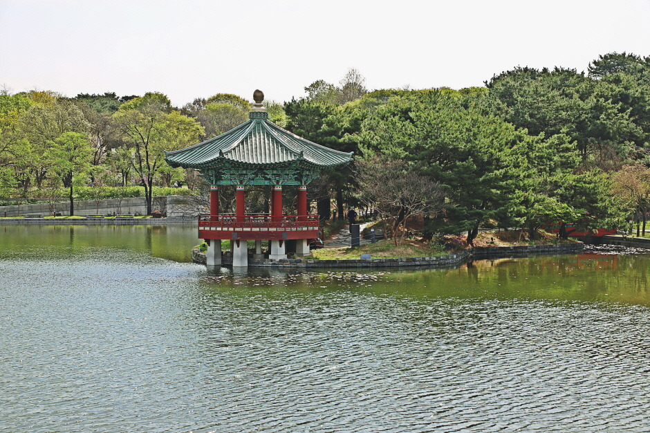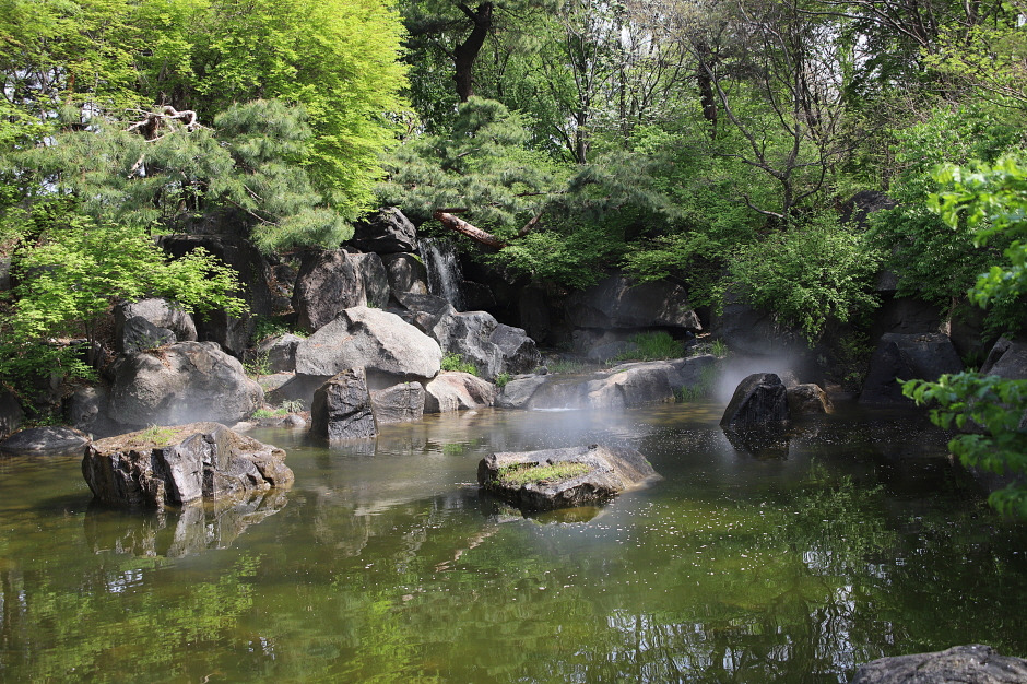 거울못은 산과 물의 조화를 강조하여 꾸미는