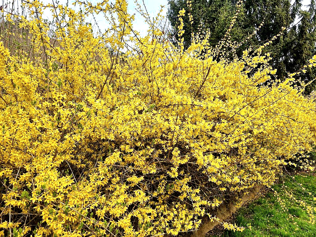 개나리의 노랑색채로 부터공원의 피어있는 꽃들을 보니 행복하다