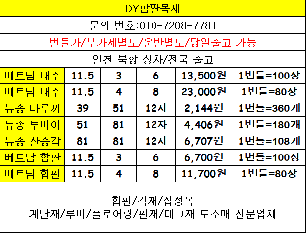 합판/데크/각재 도소매 전문업체 디와이합판 목재입니다.