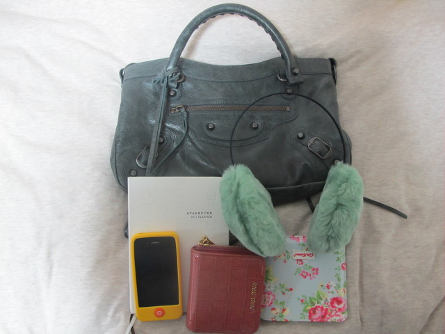 저 밑에 가방 들고 나갔던 날 들어있던 소지품들인데요 저 정도 넣어도 가방 모양 안 미웠답니다.^^