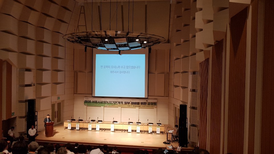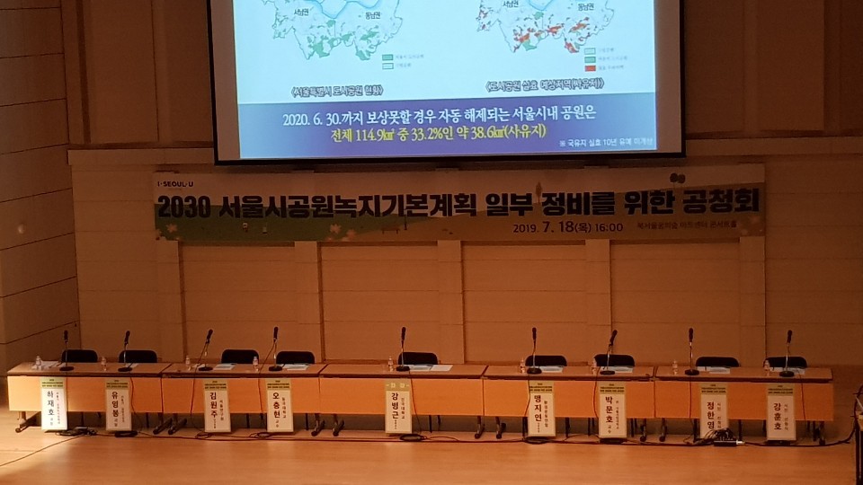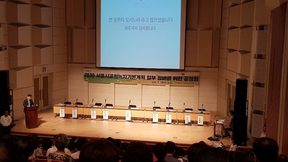 서울시에서 개최한 2019년 7월18일, 2030 서울시공원녹지기본계획 일부 정비를 위한 공청회에 다녀오신 토지주여러분 수고 많으셨습니다. 저도 참석하여 우리의 목소리에 힘을 실어습니다.