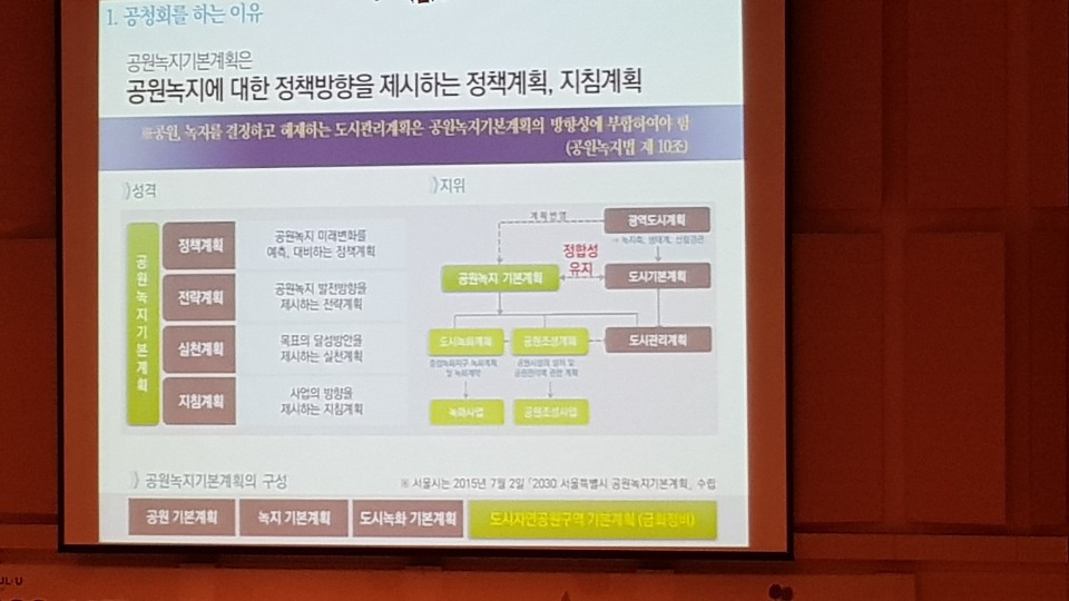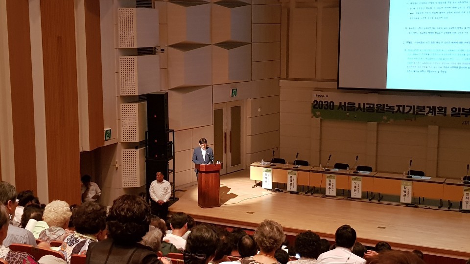 도시공원 기본계획 변경안 설명을 하재호 서울시 공원녹지정책과장이 진행했는데,