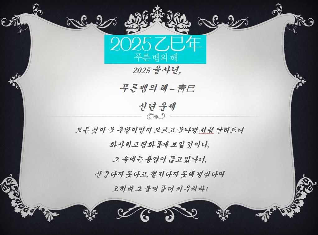 2025년 을사년은 #불의화신 #청사, #푸른뱀의 해이다.