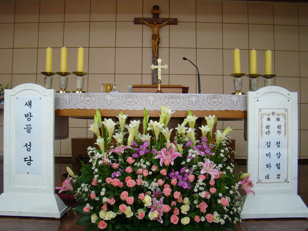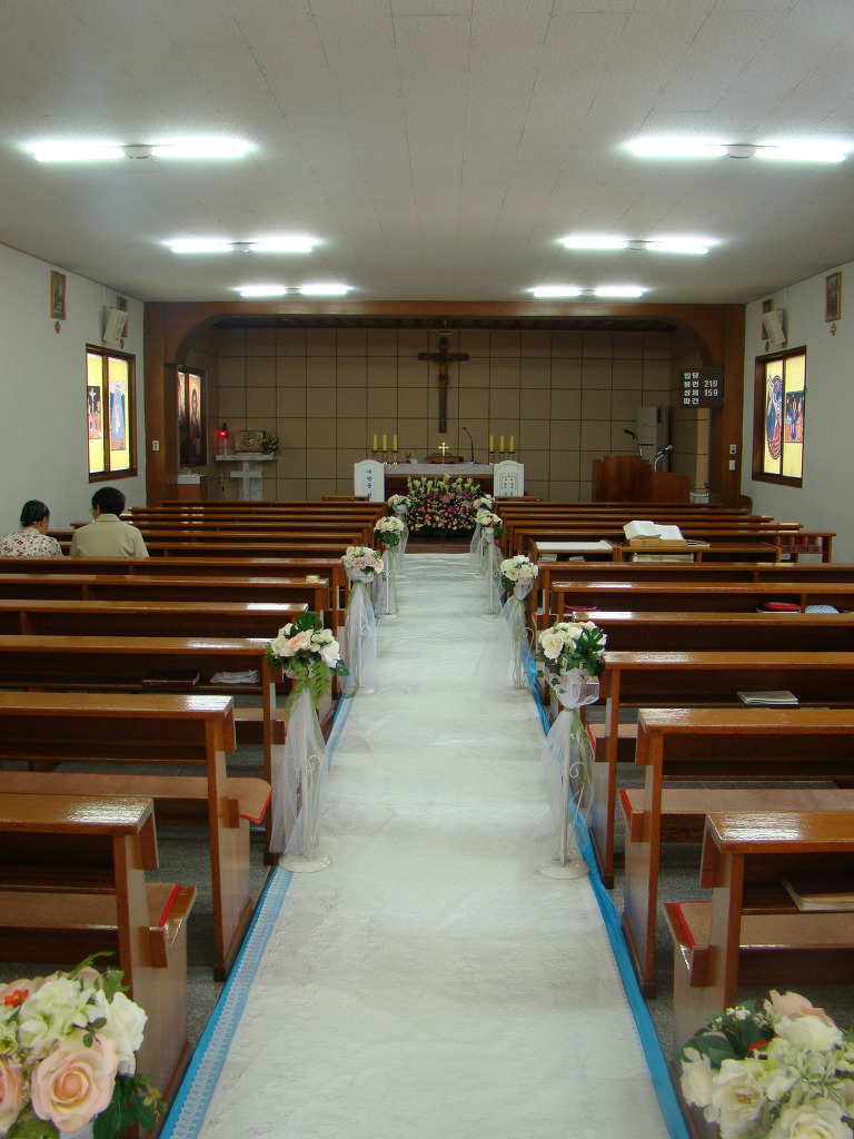 성당에서의 결혼식이 참 쉽지는 않았습니다. 예식장에서 했을떄는 전혀 신경 쓸 필요가 없었던, 신부 대기실이나 성전 장식부터 하객들 식사까지 하나 하나 신경써야 할 부분이 상당히 많았습니다. 물론 집사람이 다 준비했지만....
