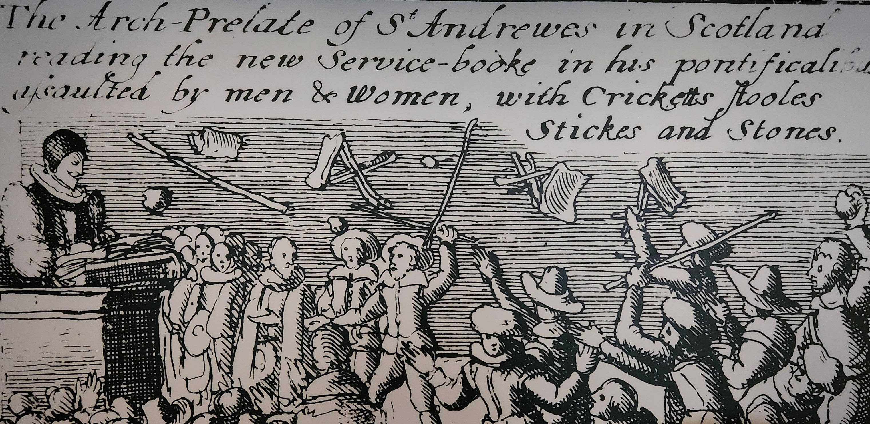 때는 1637년 7월 23일, 에든버러의 세인트 자일스 성당(St. Giles’ Cathedral)에서 잊을 수 없는 사건이 벌어졌다. 예배 시간에 사용되던 예전(禮典)이 바뀌면서, 성도들의 불만이 폭발한 것이다. 제임스 1세 왕의 아들 찰스 1세(Charles I)와 이를 뒷받침한 캔터베리 대주교 윌리엄 로드(William Laud)의 승인으로 새롭게 편찬된 기도서(Book of Common Prayer)를 스코틀랜드 교회에 강요하기 시작했다. 하지만 이미 존 녹스의 영향으로 개신교 신앙을 귀하게 여기던 스코틀랜드 장로교 신자들에게 그것은 교회를 다시 로마 가톨릭 미사로 되돌리는 행위로 여겨졌다.