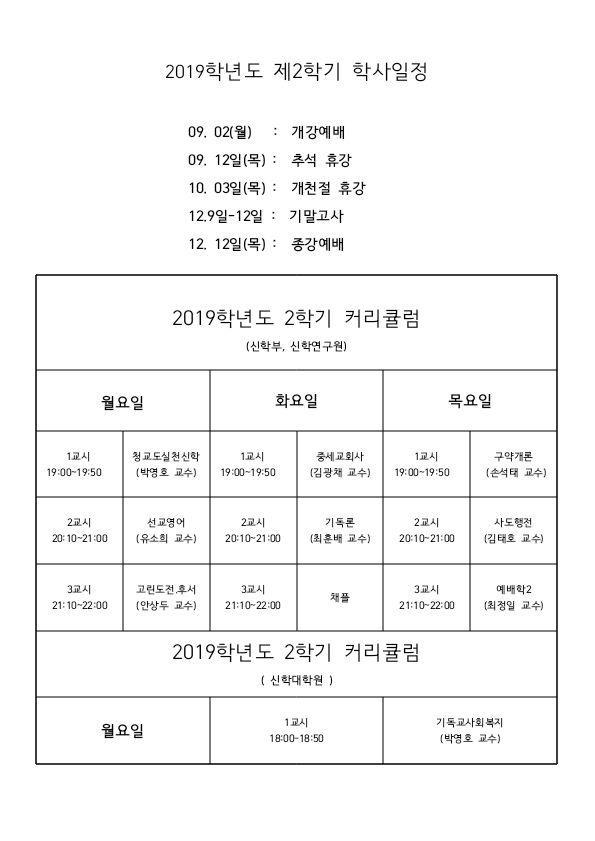 [총회언약신학원] 2019년도 2학기 학사일정 작성자유소희|작성시간19.09.03|조회수120 목록 댓글 0 글자크기 작게가 글자크기 크게가 다음검색 현재 게시글 추가 기능 열기 북마크 공유하기 신고 센터로 신고 댓글 댓글 0 댓글쓰기 답글쓰기 댓글 리스트
