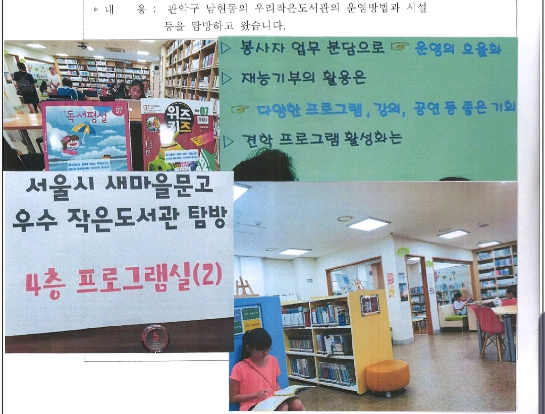 응공동) 7월 24일 서울시 우수도서관 탐방 작성자수정(응봉)|작성시간19.09.20|조회수30 목록 댓글 0 글자크기 작게가 글자크기 크게가 서울시 우수도서관 탐방 다음검색 현재 게시글 추가 기능 열기 북마크 공유하기 신고 센터로 신고 댓글 댓글 0 댓글쓰기 답글쓰기 댓글 리스트