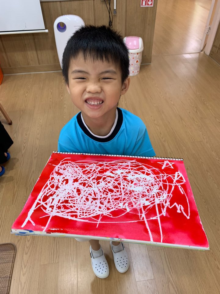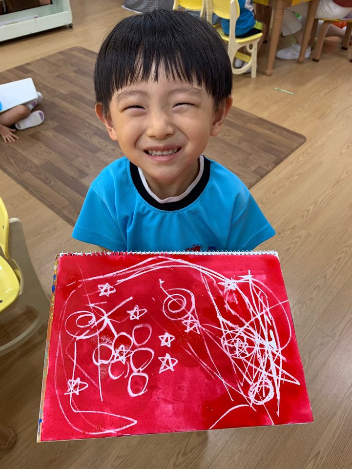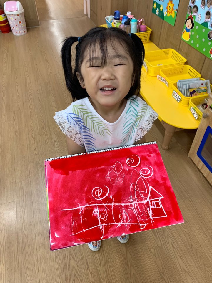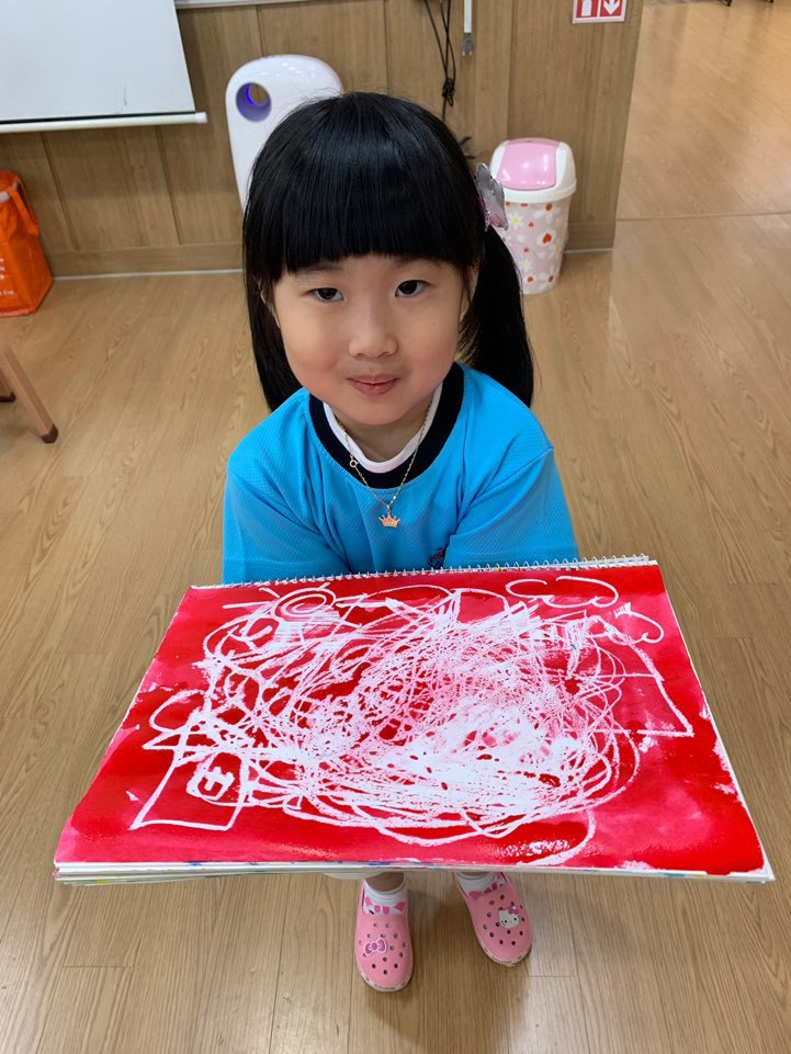 오늘은 하얀색 크레파스로 스케치북에 자유롭게