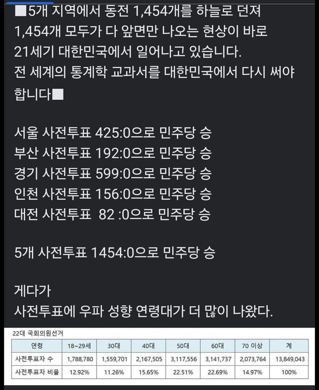 ●사전투표와 당일투표 엄청난 괴리율