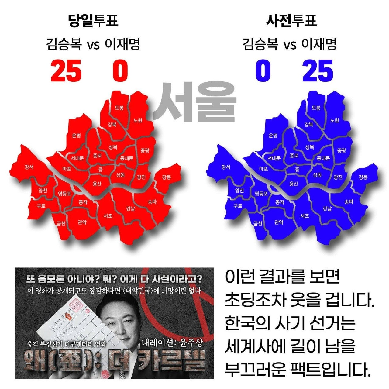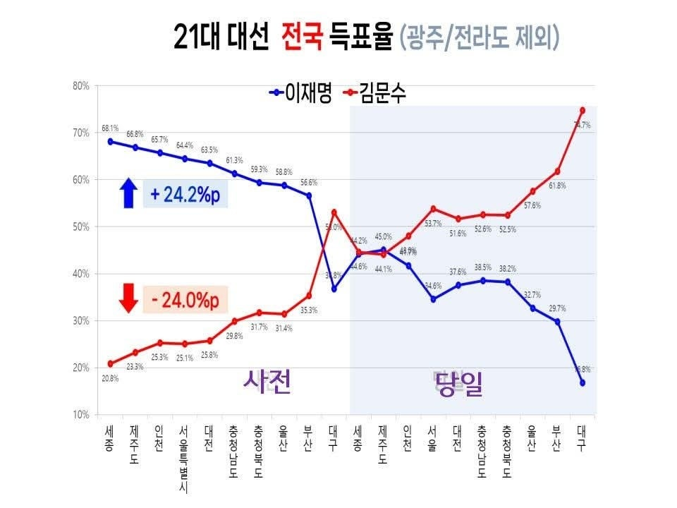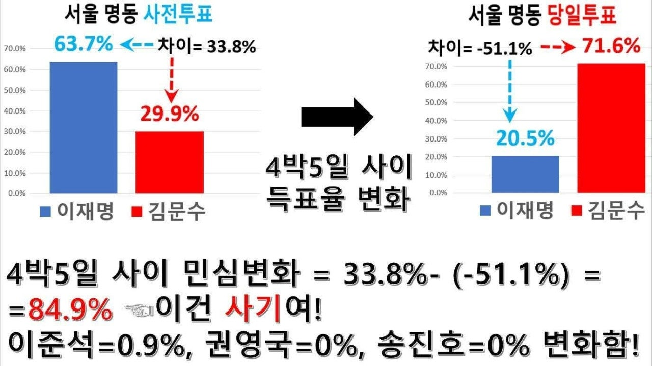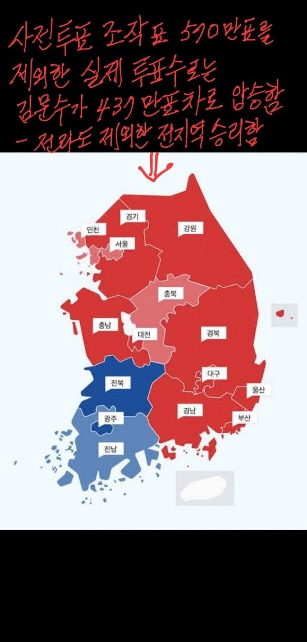 훨씬 더 큰 표 차로 김문수가 이겼을 것임!