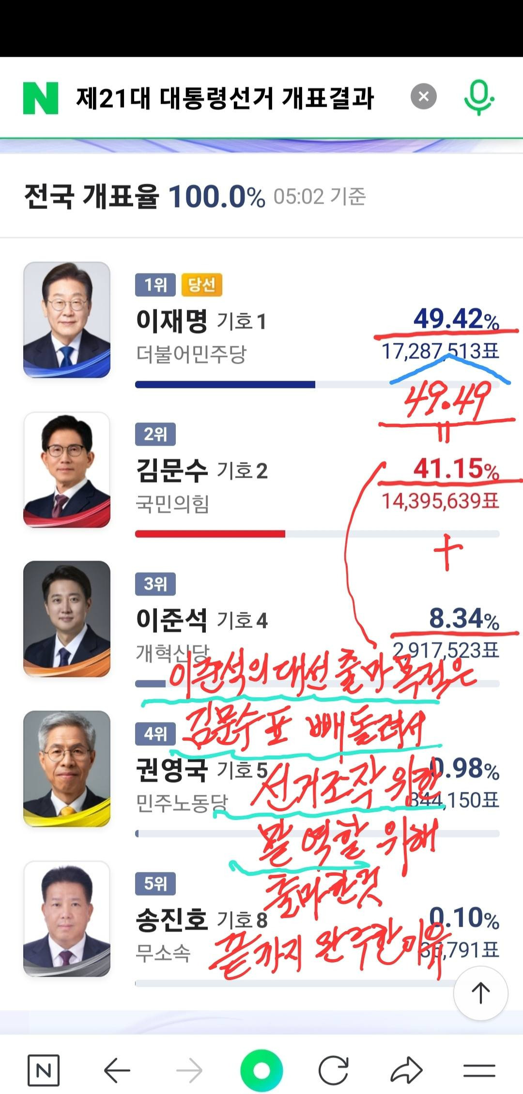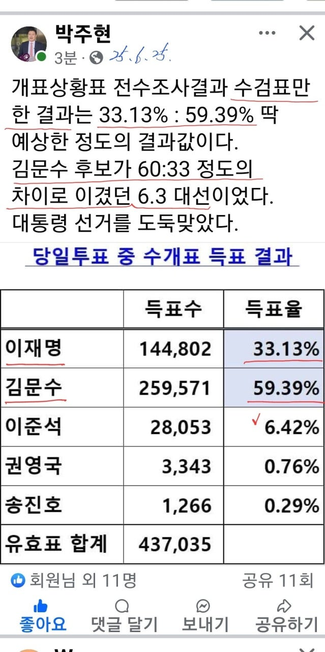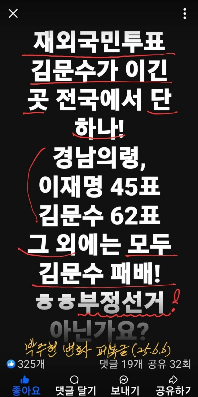 훨씬 더 큰 표 차로 김문수가 이겼을 것임!