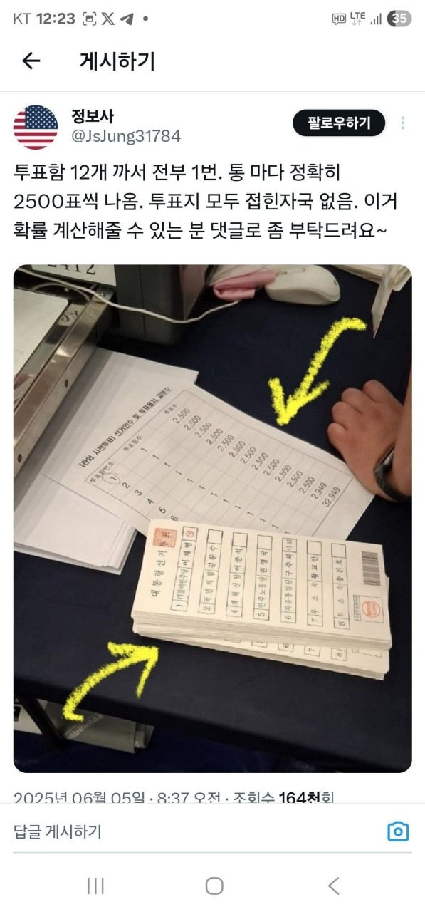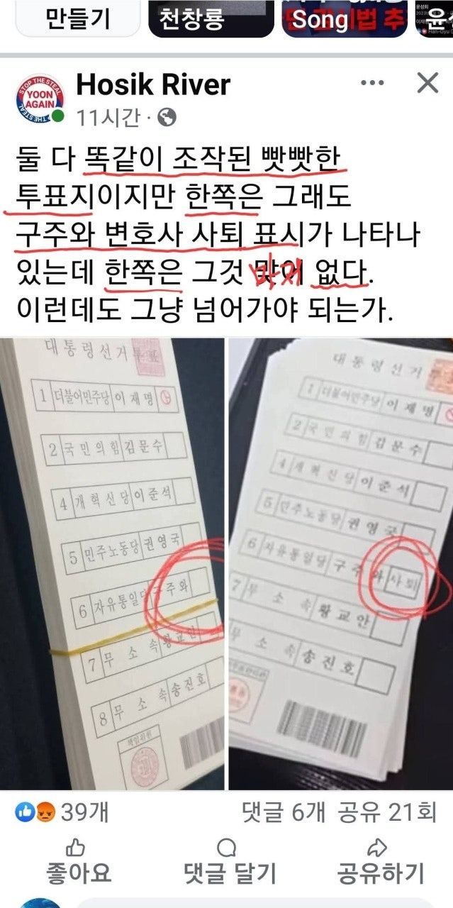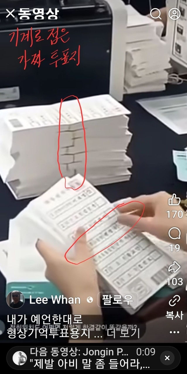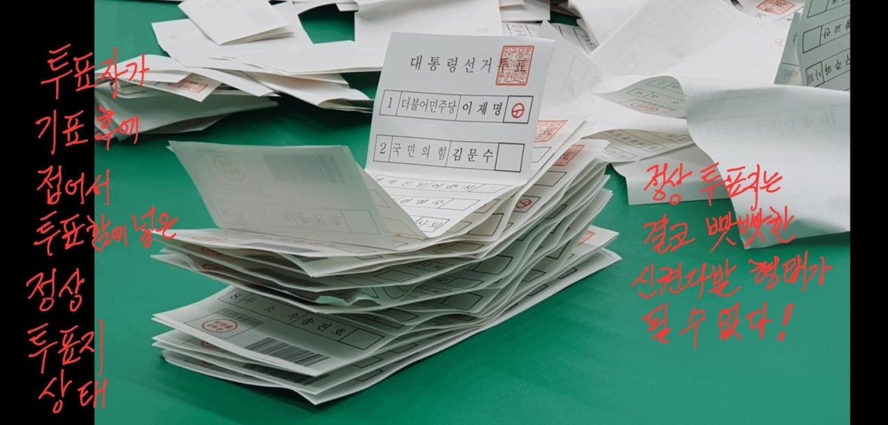 (cf.진짜 투표지는 항상 접혀있고 구겨져 있음)