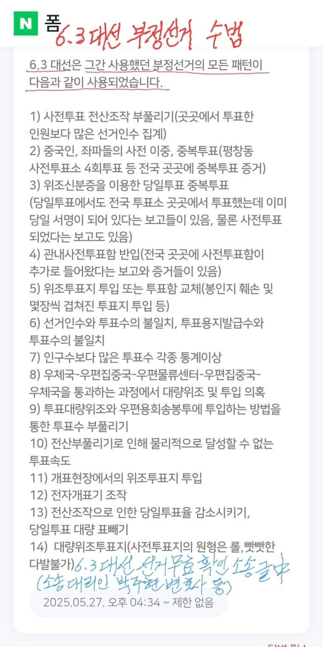 "2025년 6.3 한국 대선, 조직적 부정 있었다"/