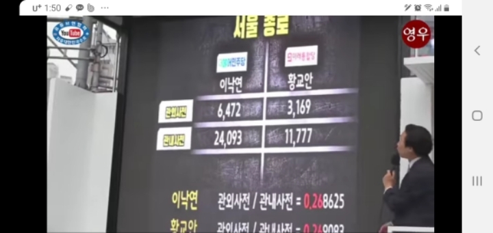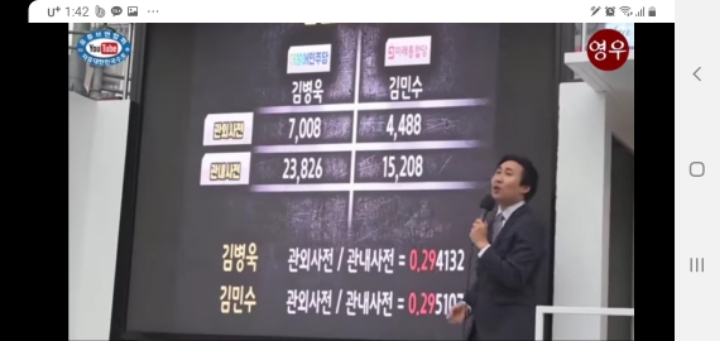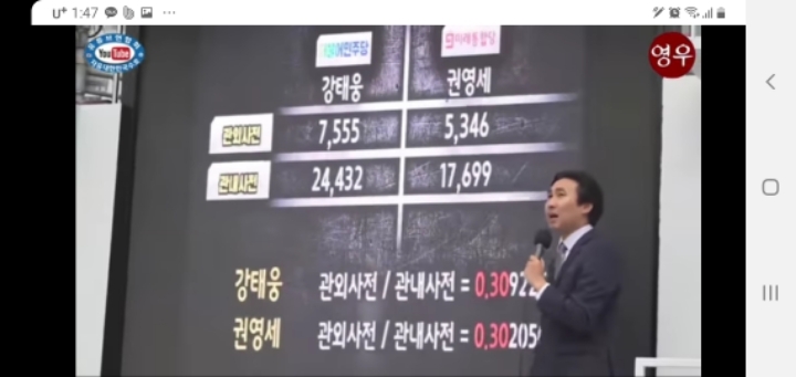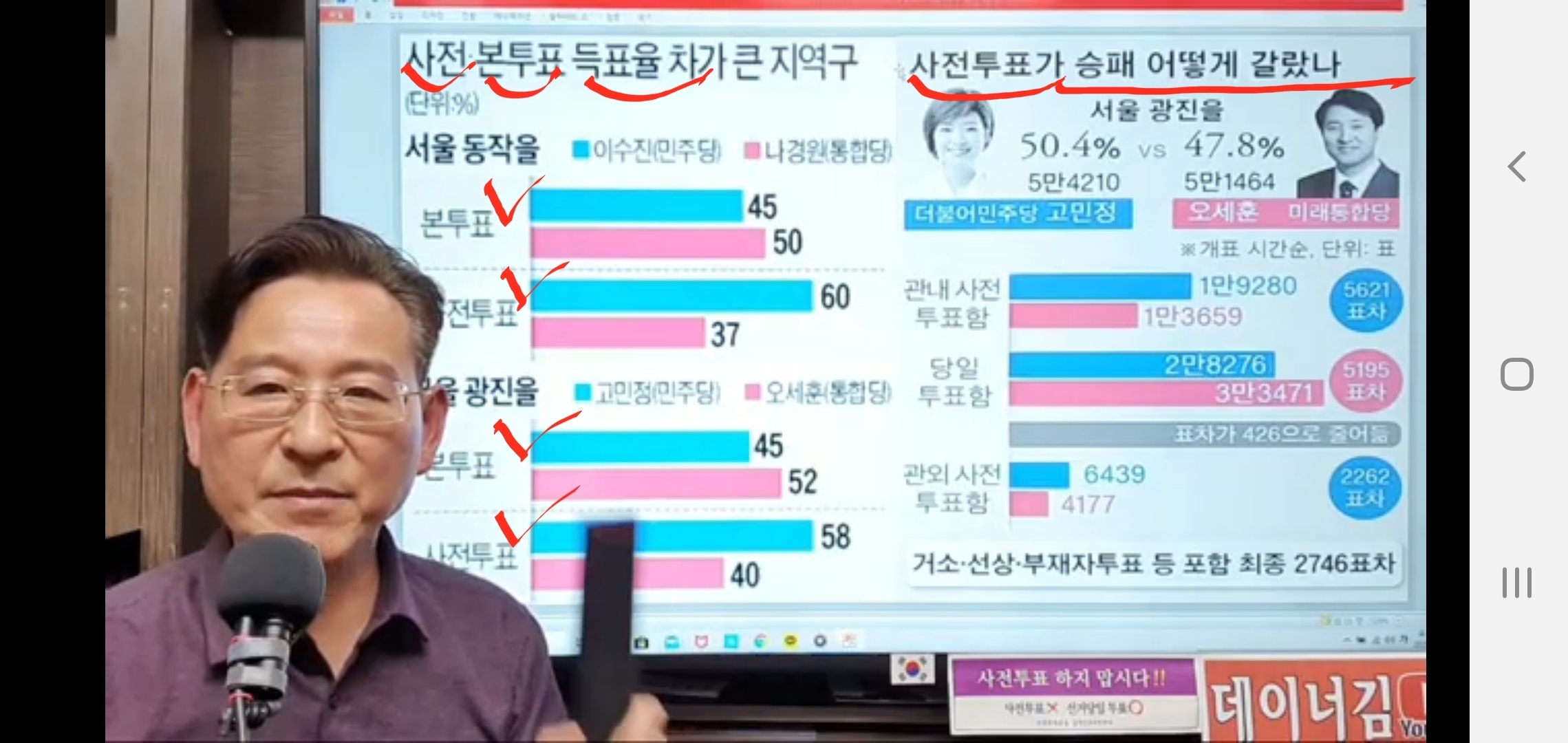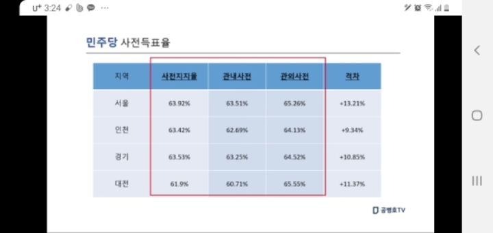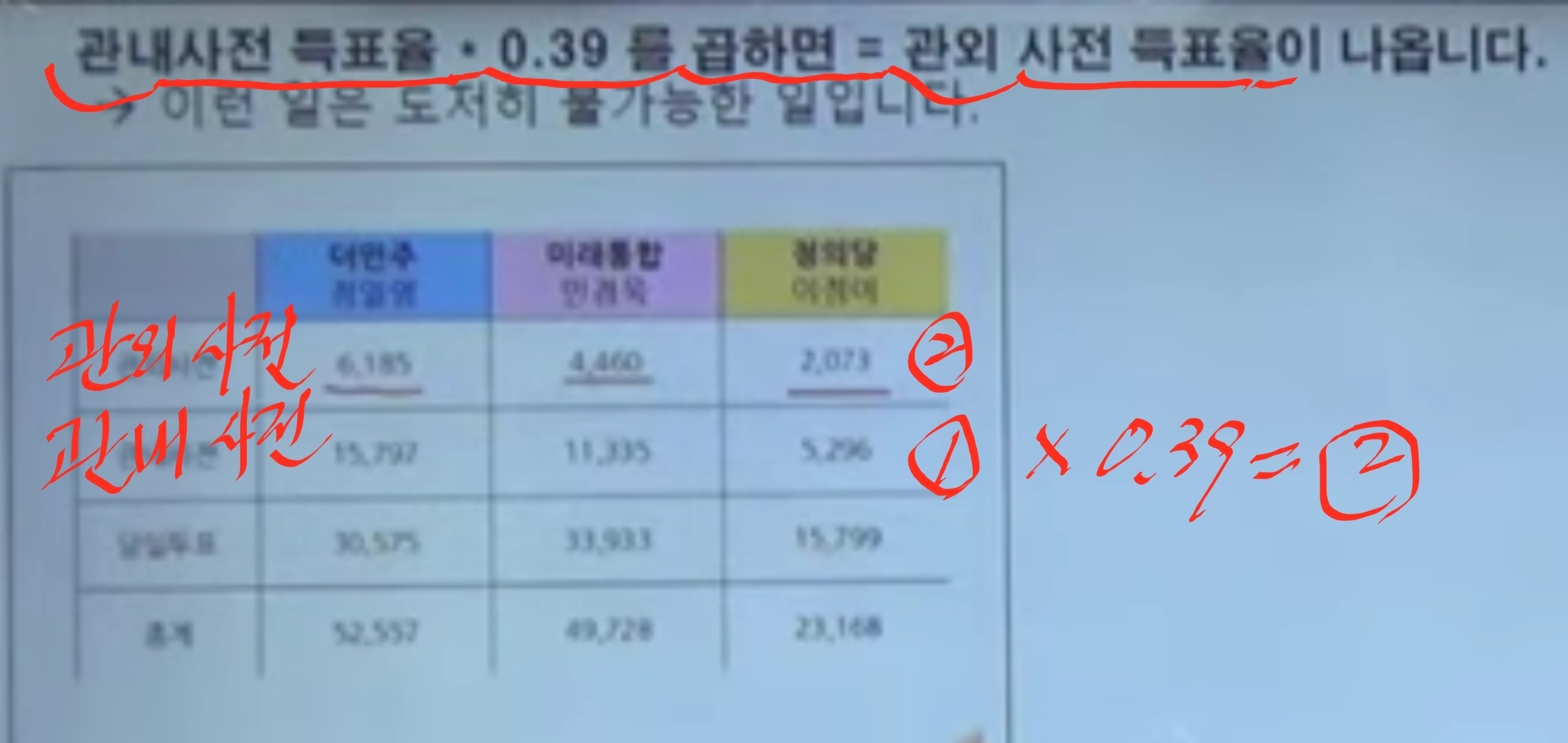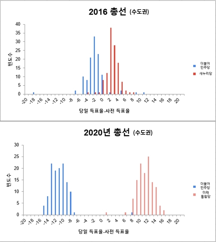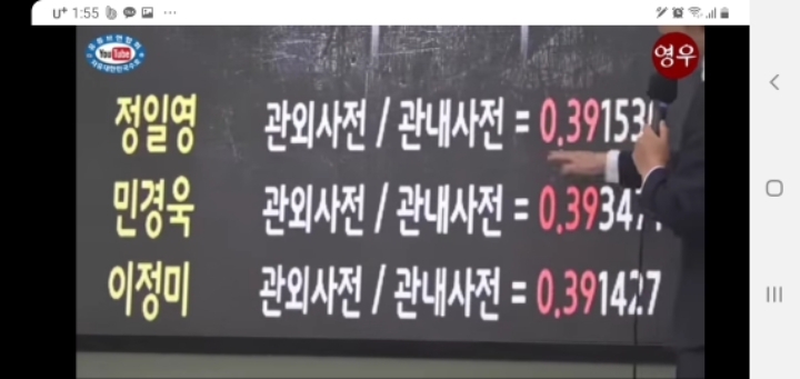 정확하게 1번 후보의 사전과 당일의 차이가 됨!