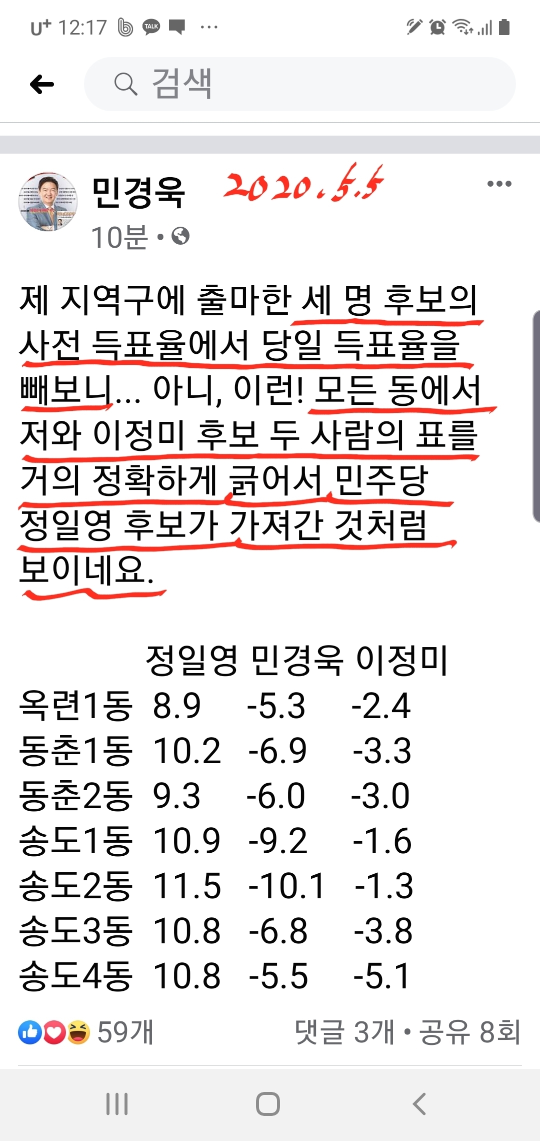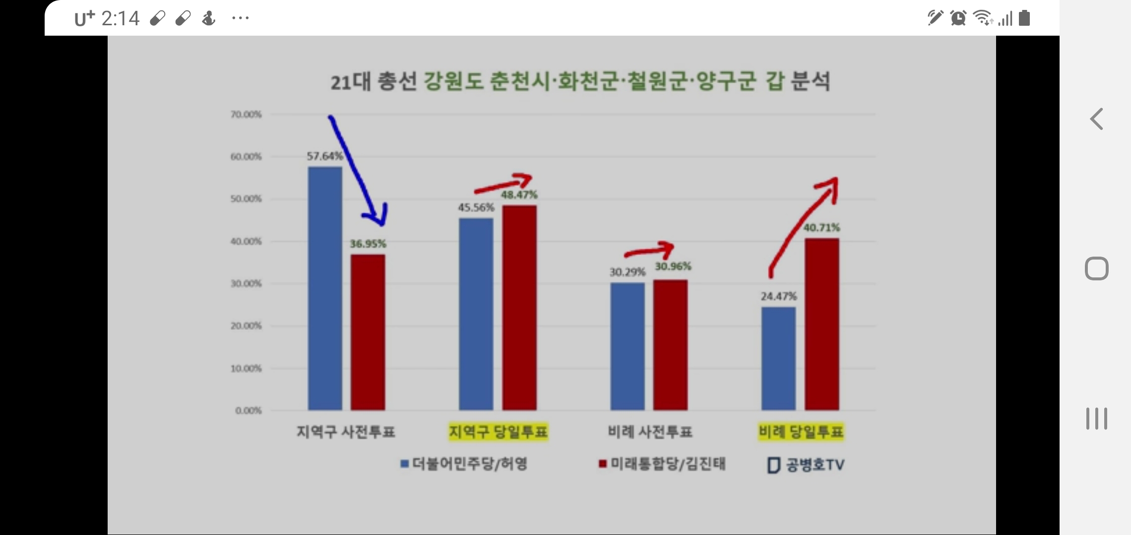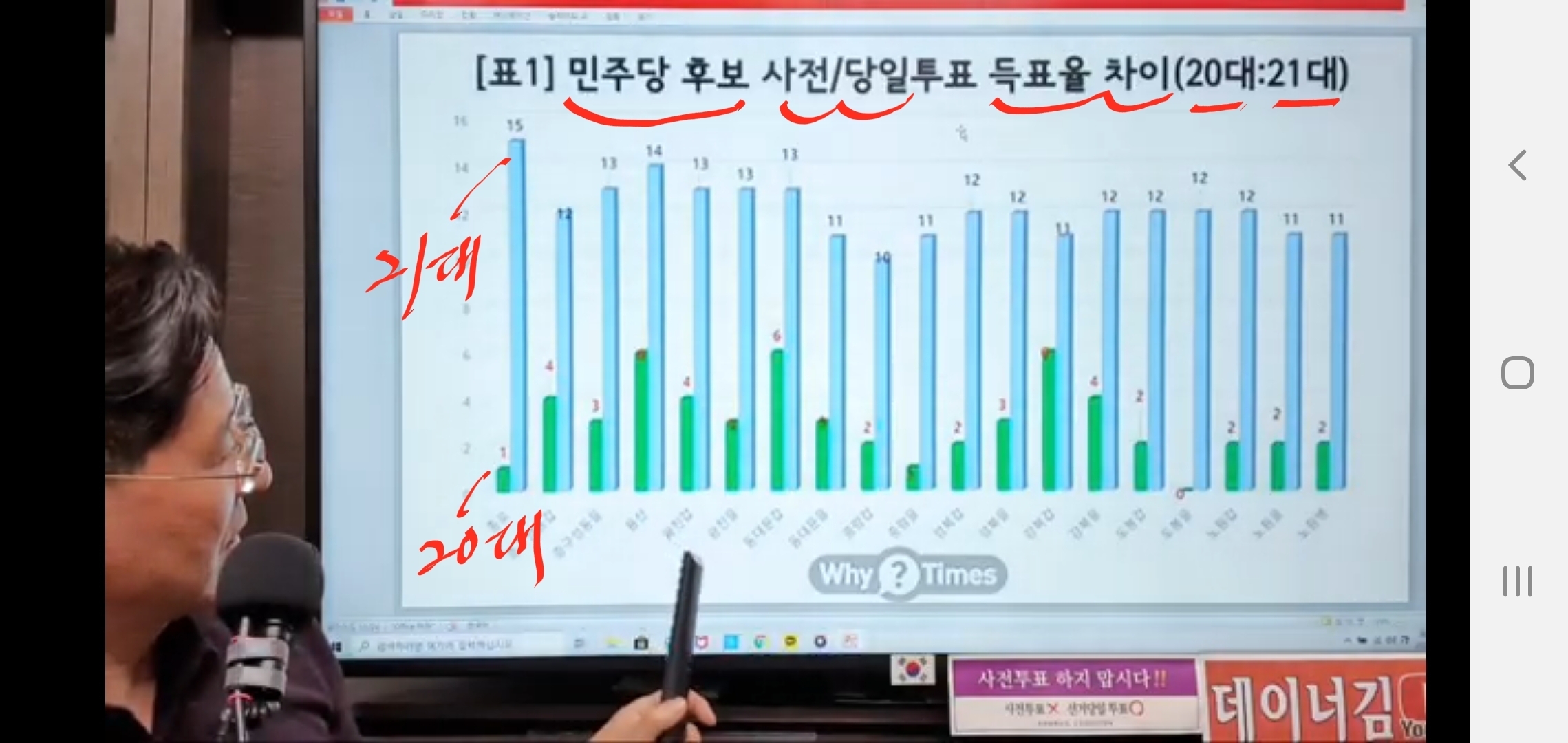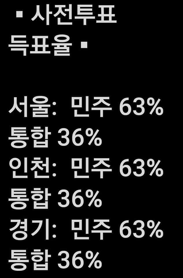 정확하게 1번 후보의 사전과 당일의 차이가 됨!
