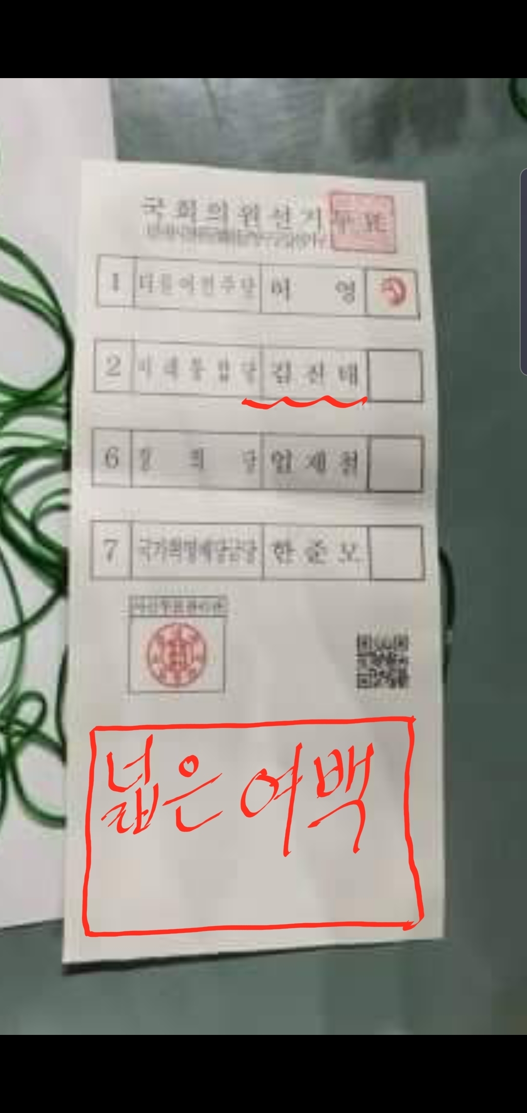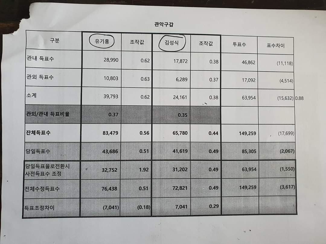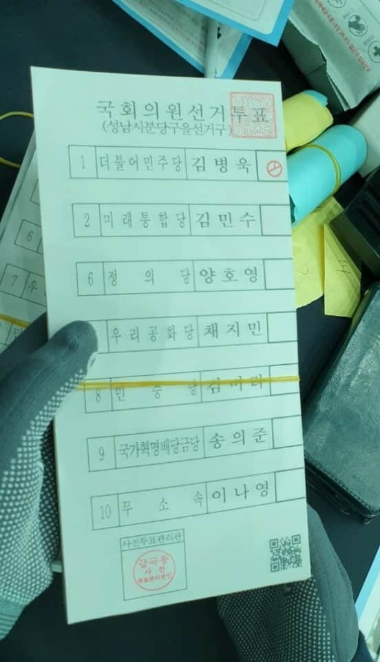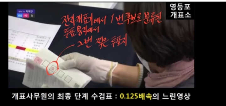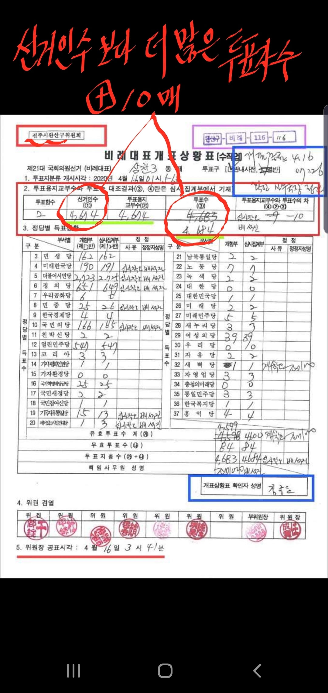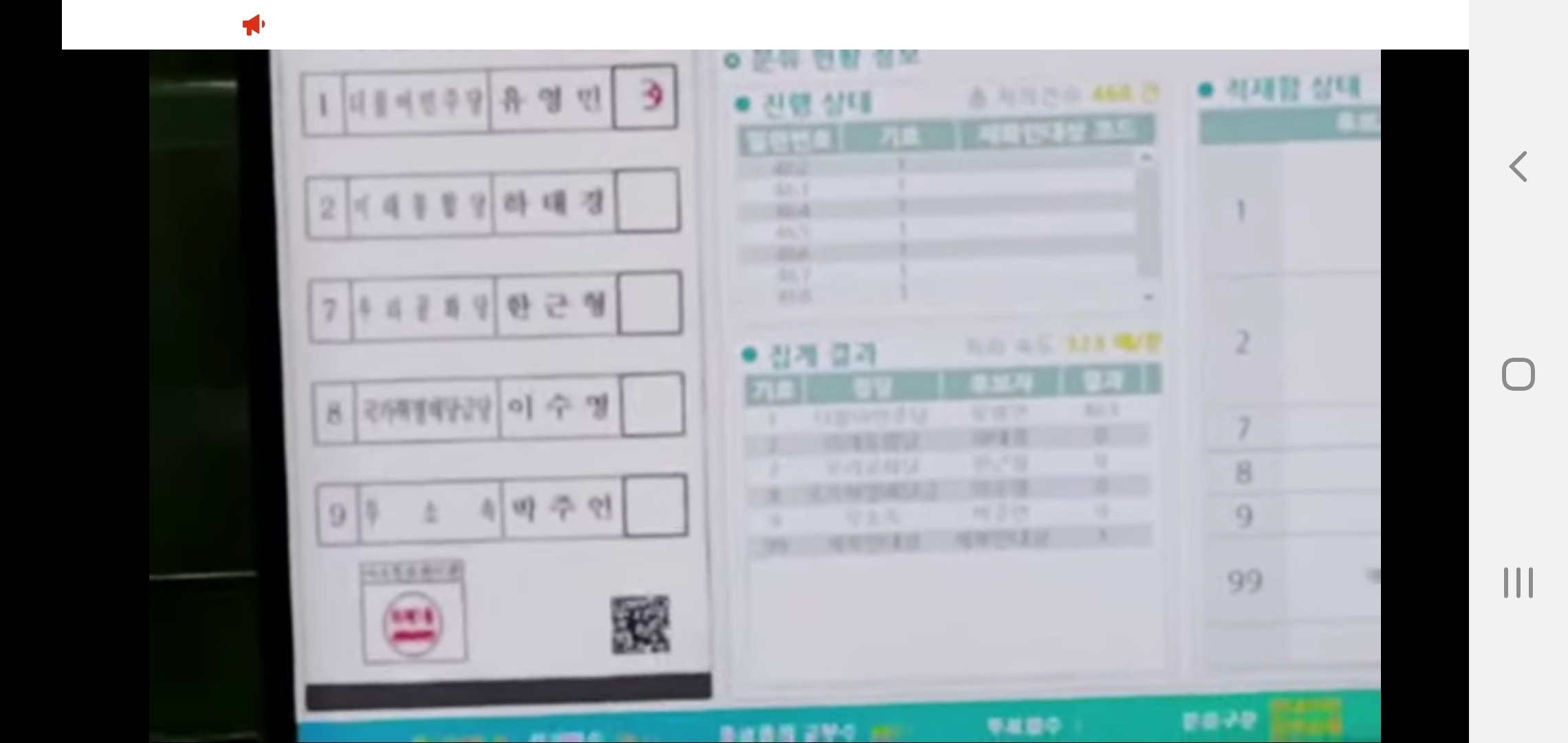 개표장에 100% 더불어시민당만 나온 투표지 촬영!