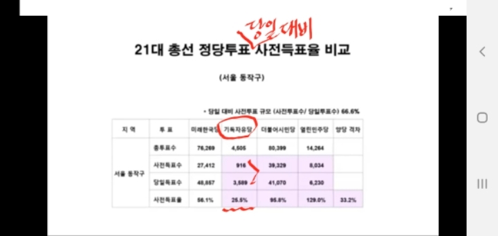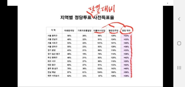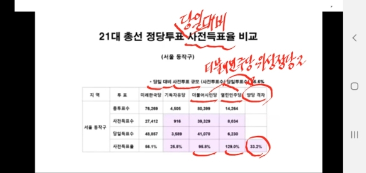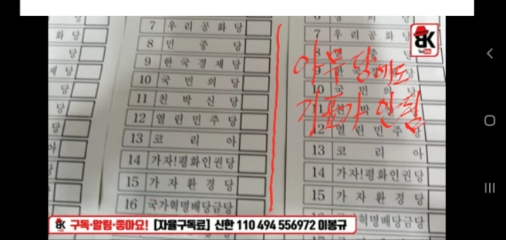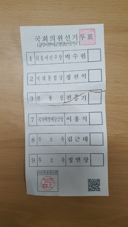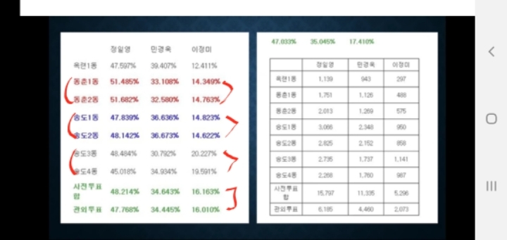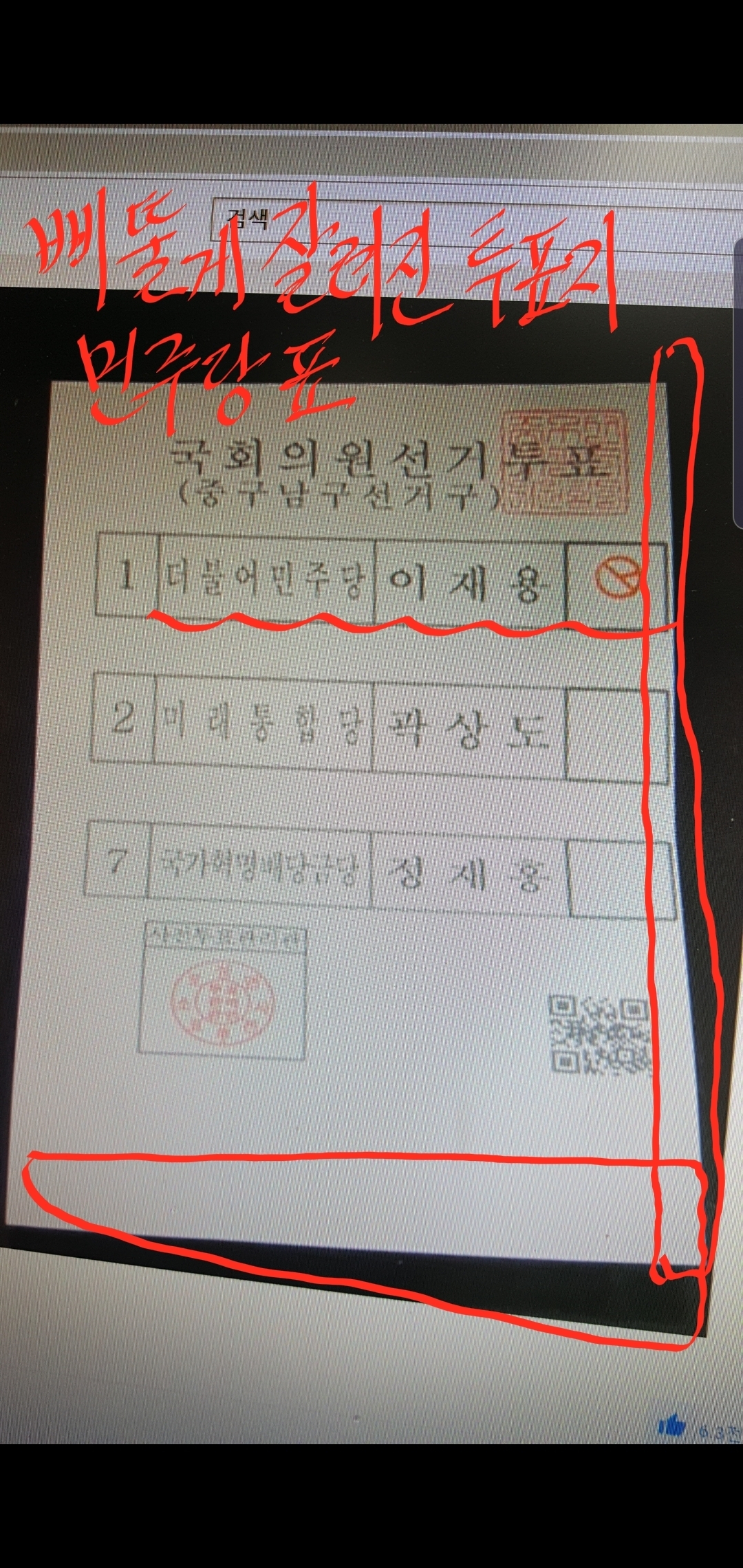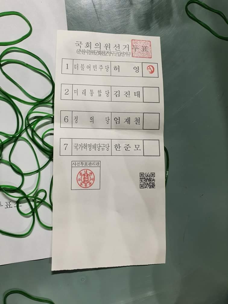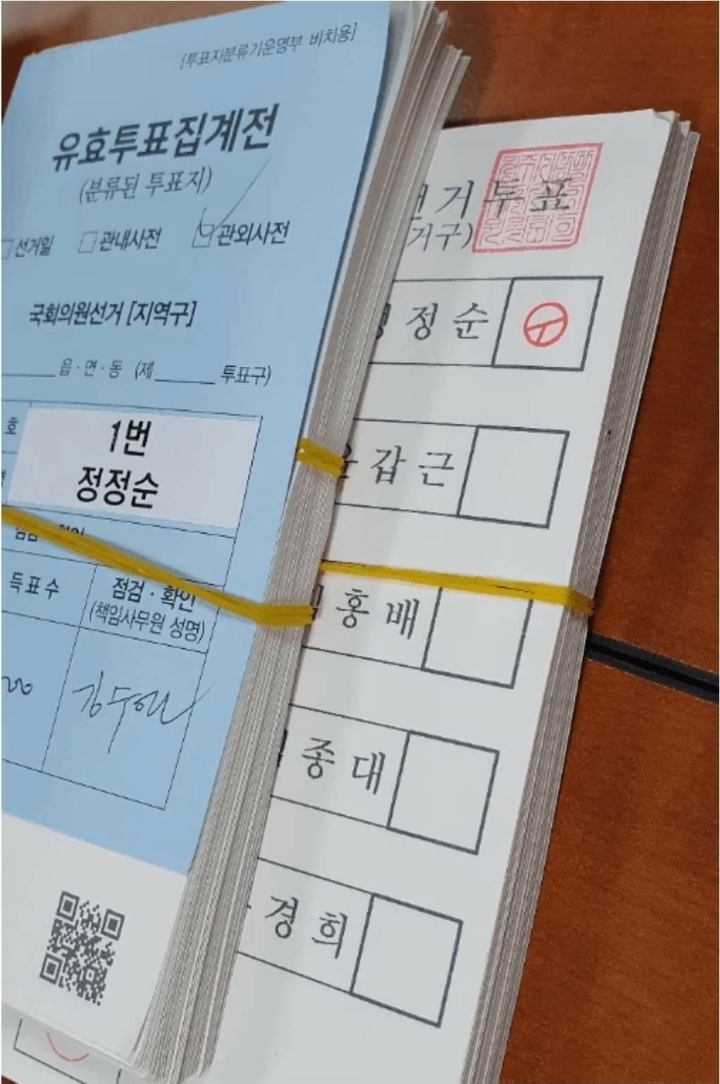 개표장에 100% 더불어시민당만 나온 투표지 촬영!