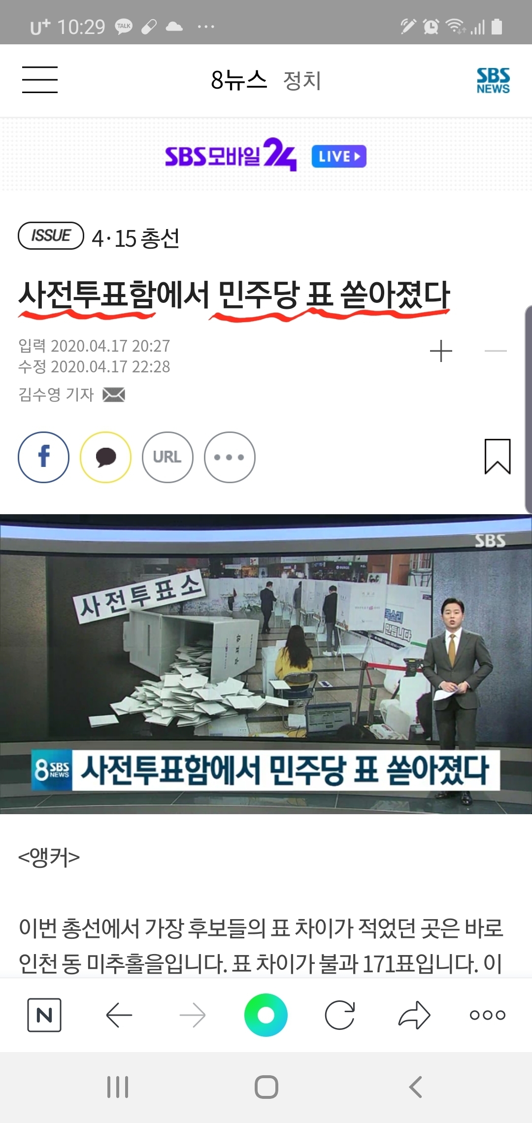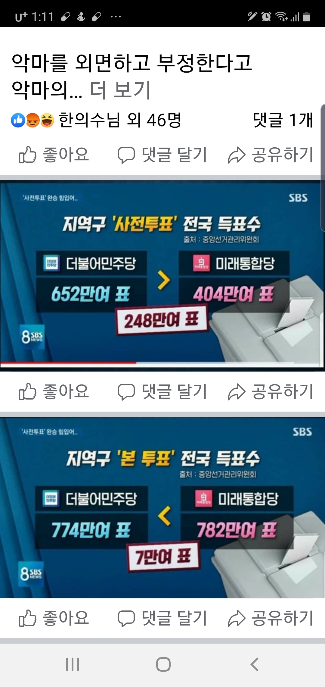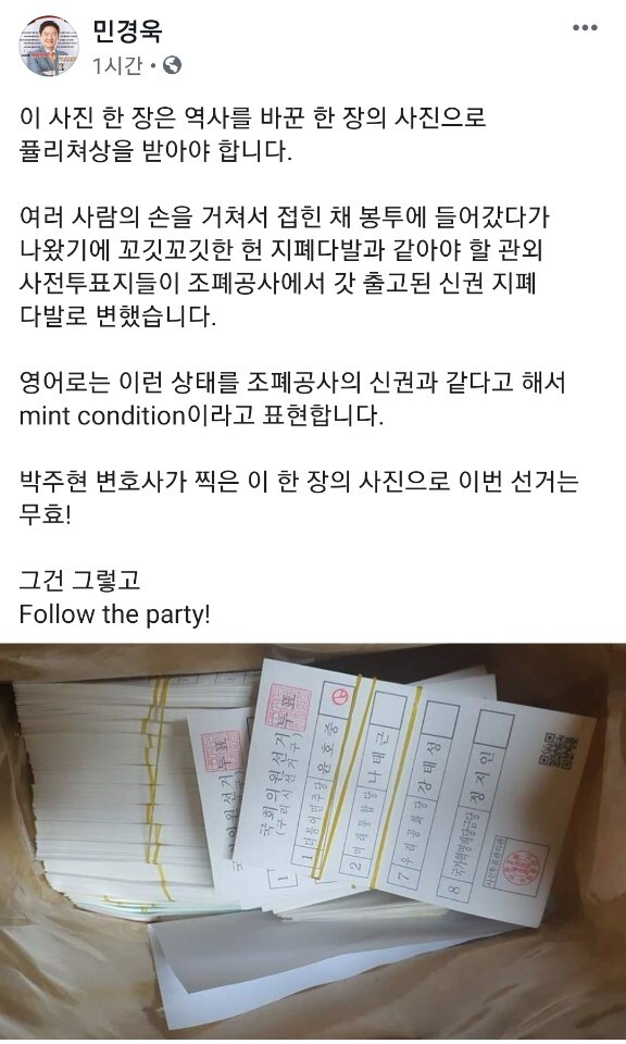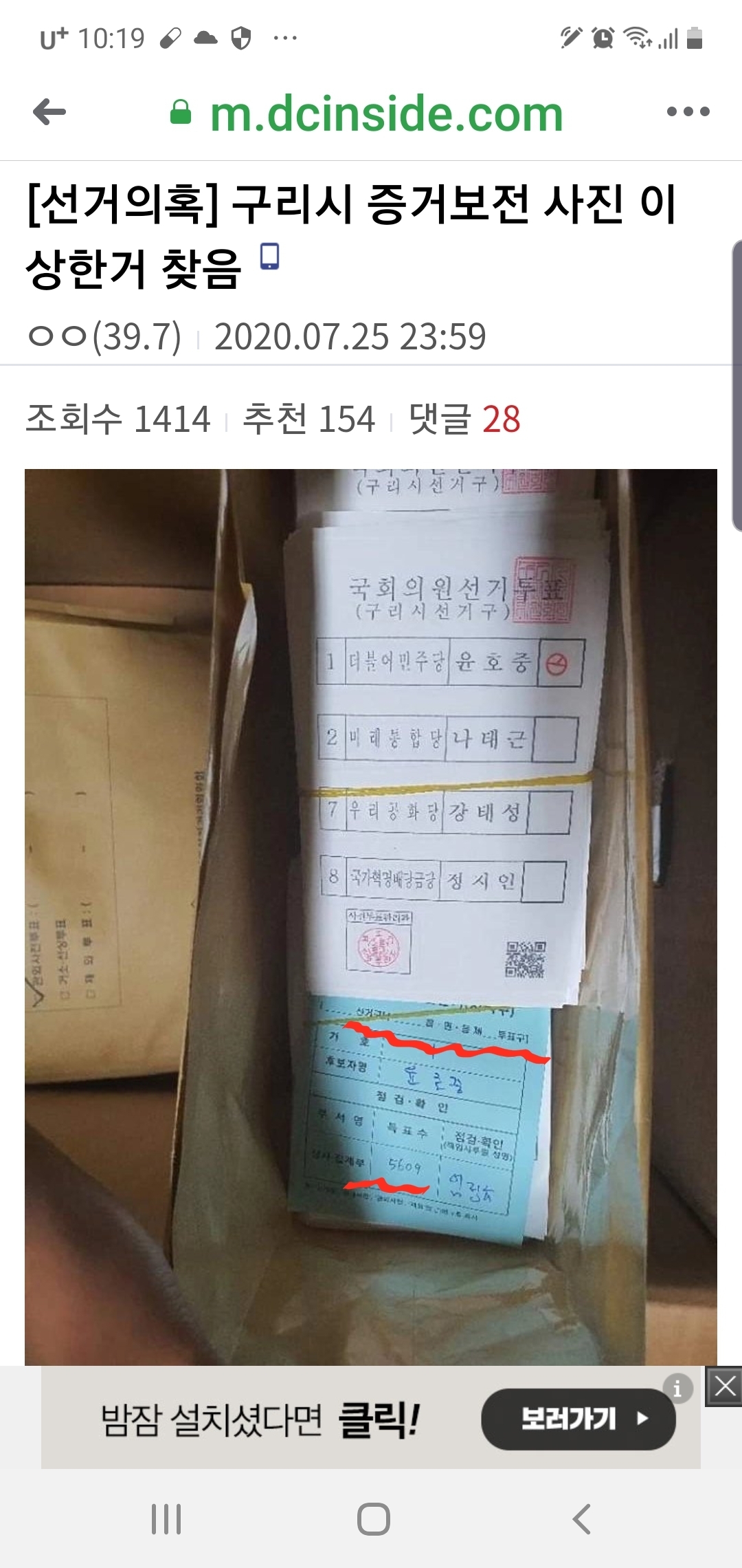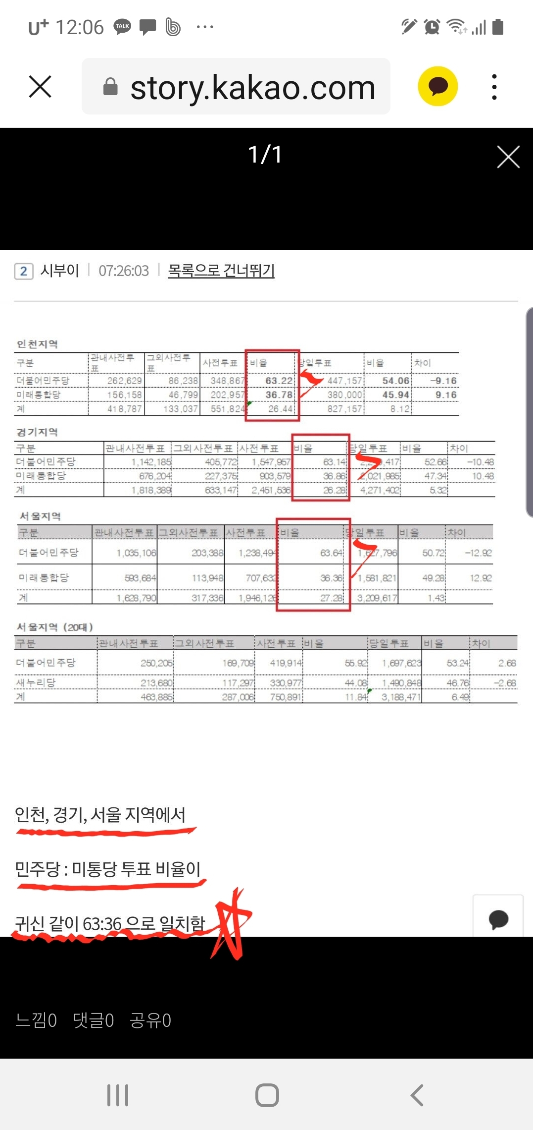 개표장에 100% 더불어시민당만 나온 투표지 촬영!