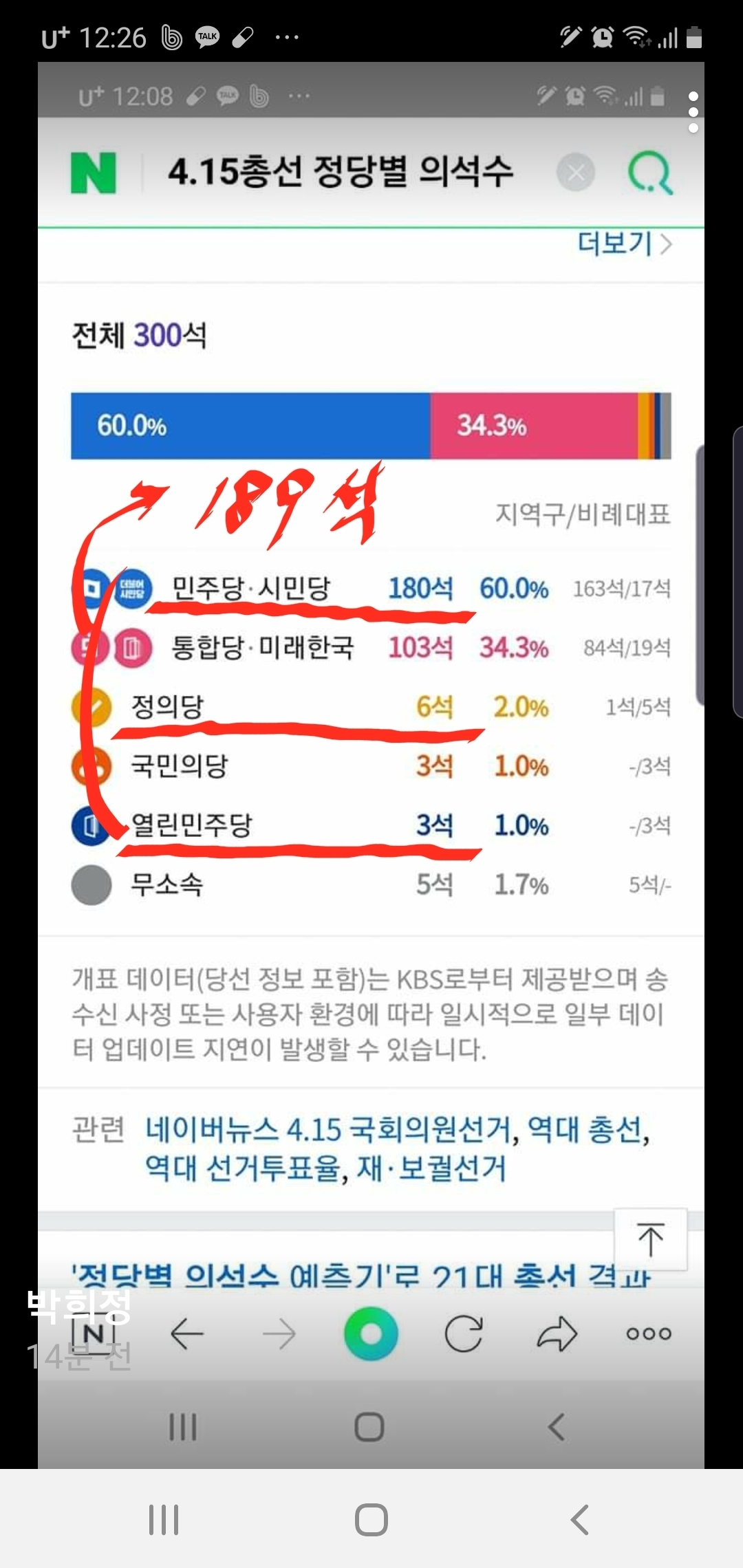 더불어민주당 123석, 미래통일당 124석어야 합니다.