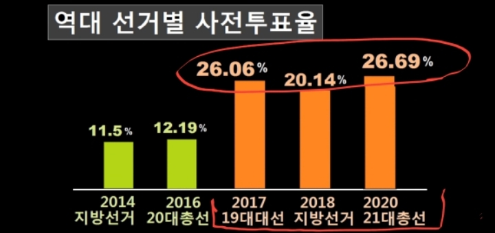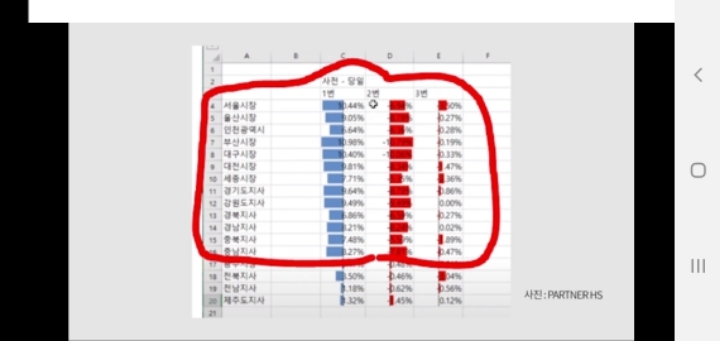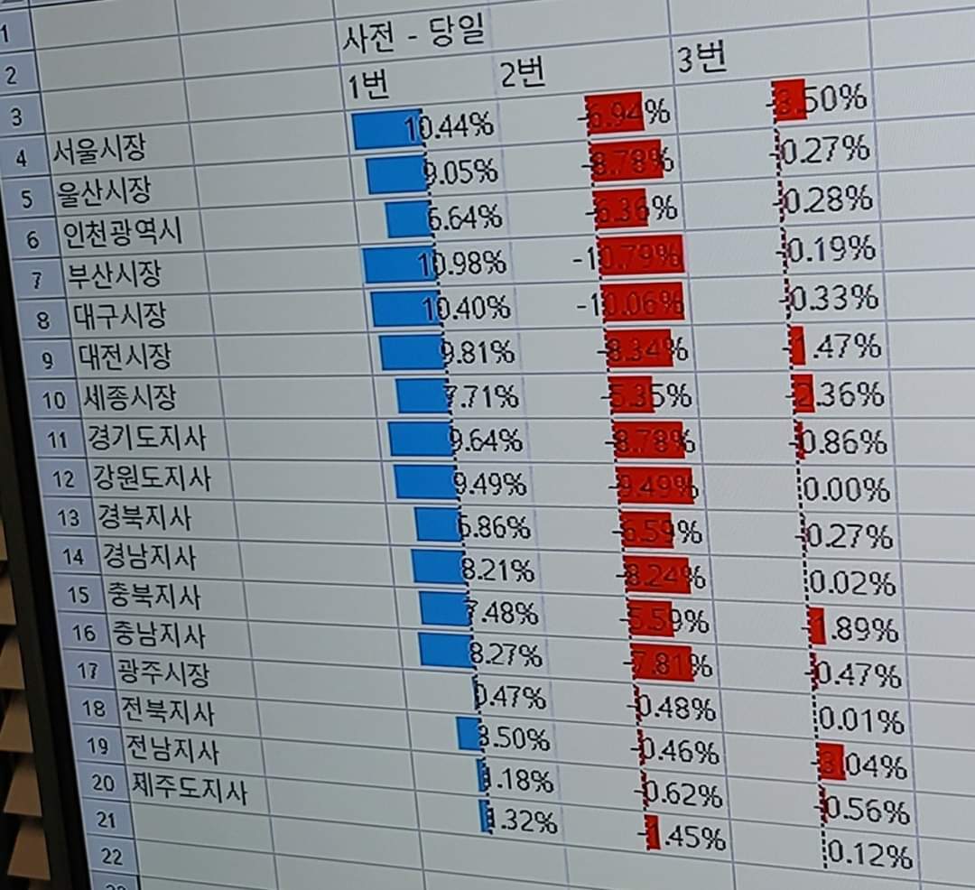 정확하게 1번 후보의 사전과 당일의 차이가 됨!