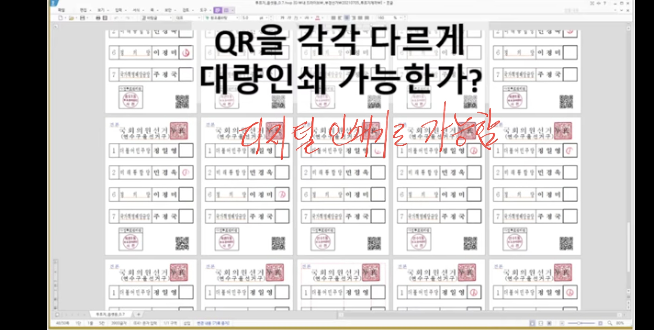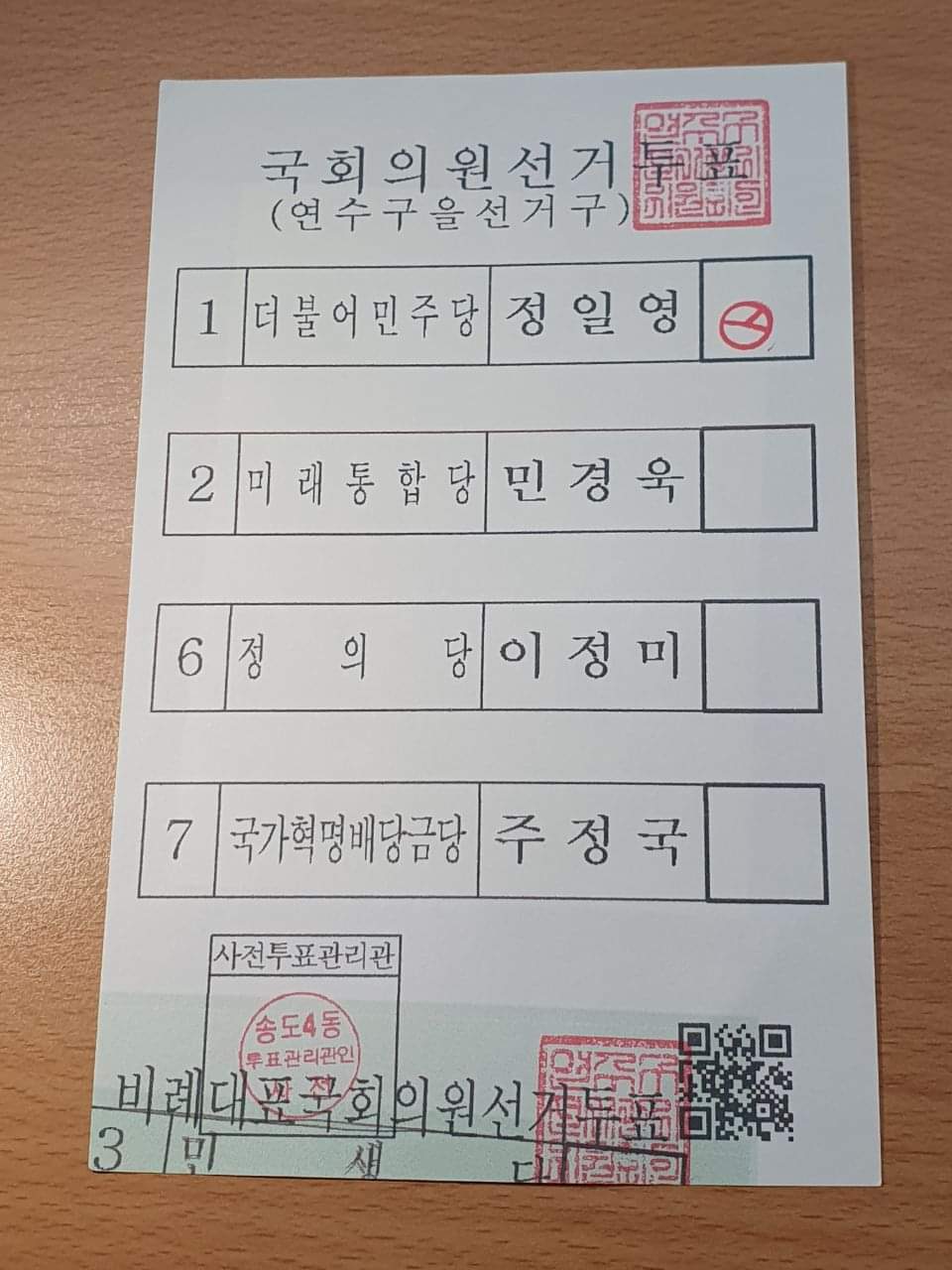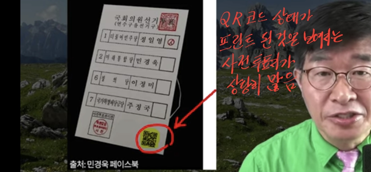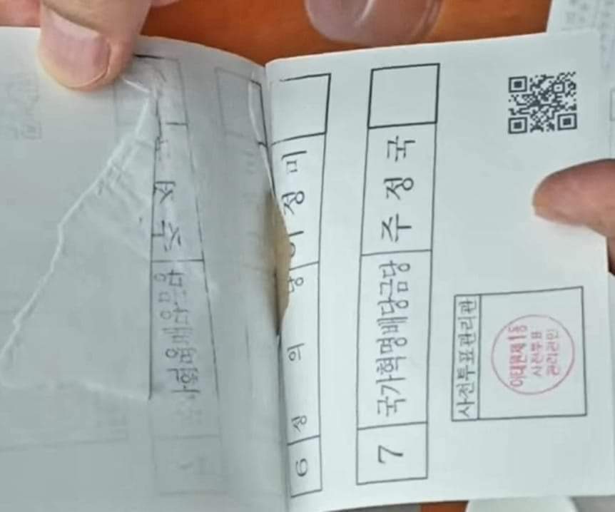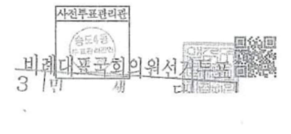 큐알코드 있는 사전투표지를 직접 봄 (사전투표지가 인쇄되어
