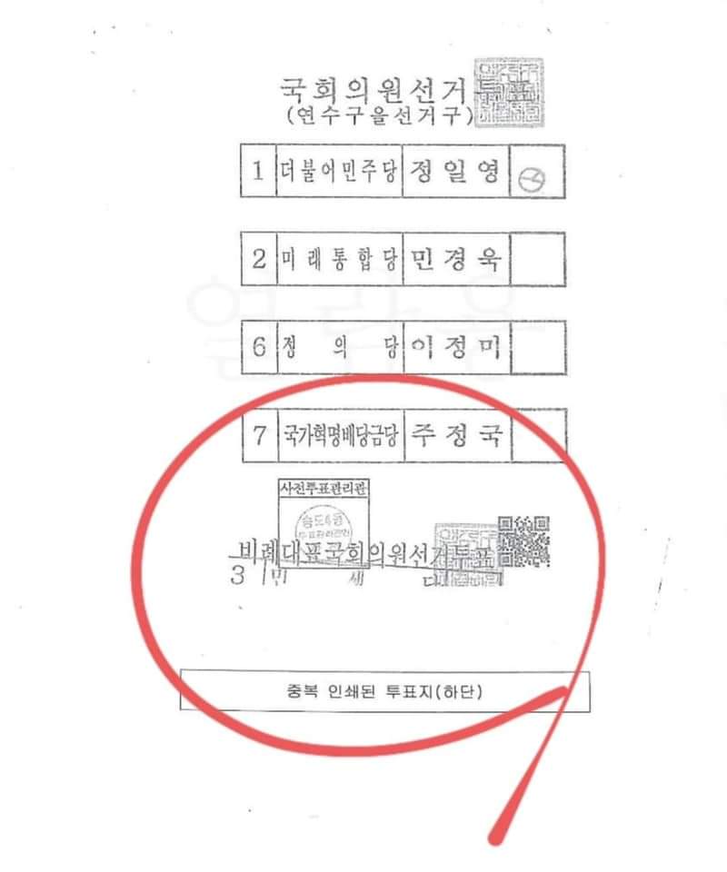 ● '인쇄된' 사전투표지(가짜 투표지)