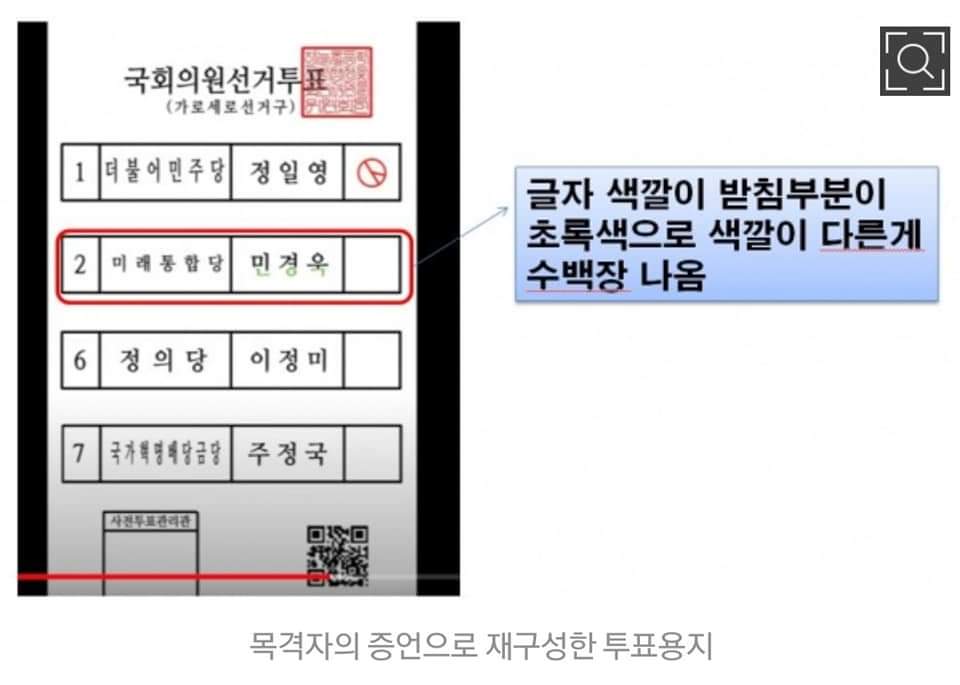 4. 사전투표지 글자색이 녹색 섞인 것 부지기수 발견 (인쇄된 증거)
