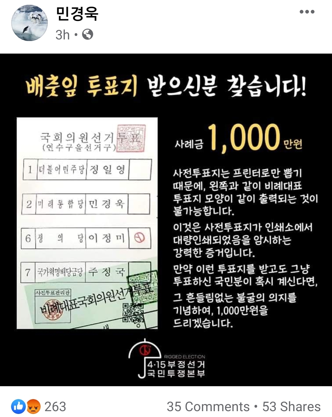 ●민경욱 대표가 페북에 게시한